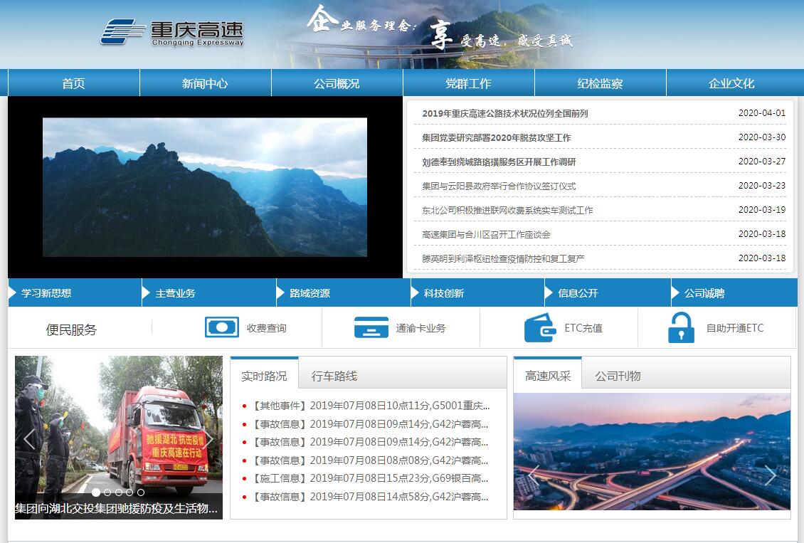 重庆高速公路集团有限公司是受市政府委托,负责全市高速公路筹融资、建设和经营管理的公益类投融资企业。集团总部设9个部门,1个中心,共32家子分公司(含2家骨干子企业),其中,分公司4家、全资子公司9家、控股公司11家,主业参股公司8家。另参股7家企业。截至目前,资产总额近1800亿元,员工超过8000人。集团深入学习贯彻落实习近平新时代中国特色社会主义思想和党的十九大精神,把习近平总书记对重庆提出的“两点”定位,“两地”“两高”目标和“四个扎实”要求作为根本遵循,深入贯彻新发展理念,加快完善全市高速路网,主动服务“一带一路”建设和长江经济带发展,强化管理服务提升,构建“美丽高速”“智慧高速”,让社会公众“享受高速,感受真诚”。截至目前,全市已形成“三环十二射多联线”的高速公路网络,通车里程达到3093公里(其中,高速集团全资及控股2128公里),路网密度达到3.75公里/百平方公里,省际通道20个。集团始终牢记企业使命和责任,紧扣建设交通强国战略,以发展成为高速公路投资、建设、运营和智慧交通的综合服务商为目标,打好“三大攻坚战”,实施“八项行动计划”,推动高质量发展、创造高品质生活。在实施高速公路建设三年行动计划、城市提升行动计划上展现新作为,坚持“生态优先、绿色发展”,从“区域间”和“市域内”上着力,推动高速网络“加密度”,路网运行“加智慧”,城市形象“加颜值”。在落实全市国资国企改革上取得新突破,坚持“质量第一、效益优先”,从引战投促混改、强创新促发展上发力,加快推动“三大变革”,促进国有资本布局优化,促进国有资本合理流动,促进国有资产保值增值。到2020年,全市高速公路将新建成1000公里、新开工1000公里、开展前期工作1000公里,通车总里程达到近4000公里。