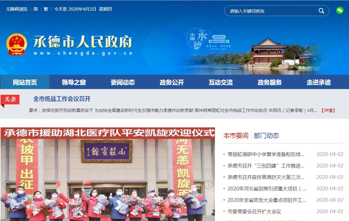 承德,是河北省地级市,河北省政府批复确定的河北国际旅游城市、连接京津辽蒙的区域性中心城市。截至2019年,全市下辖3个区、4个县、代管1个县级市和3个自治县,总面积39519平方千米,建成区面积117.94平方千米,常住人口358.27万人,城镇人口186.35万人,城镇化率52.07%。承德地处中国华北地区、河北省东北部,南邻京津,北接赤峰和锡林郭勒,东西与朝阳、秦皇岛、唐山、张家口相邻,是连接京津冀辽蒙的重要节点,具有“一市连五省”的独特区位优势,是国家甲类开放城市,中国普通话标准音采集地、中国摄影之乡、中国剪纸之乡。承德是首批国家历史文化名城,1703年清康熙修建避暑山庄,成为清王朝的第二个政治中心;1723年设热河厅;1733年胤祯取“承受先祖德泽”之义,设承德直隶州,始称“承德”;民国和解放初期为原热河省省会;1955年,热河省建制撤销,承德划归河北省,为省辖市。承德的避暑山庄及其周围寺庙是中国十大风景名胜、旅游胜地四十佳、国家重点风景名胜区,被联合国教科文组织批准为世界文化遗产,也是国家首批世界文化遗产。2012年,承德被评为中国“十大特色休闲城市”。2016年11月,承德市被中华人民共和国国家旅游局评为第二批国家全域旅游示范区。2017年,承德市地区生产总值1618.6亿元,比上年增长7.1%。其中,第一产业增加值252.2亿元,增长6.1%;第二产业增加值746.5亿元,增长4.5%;第三产业增加值619.9亿元,增长11.0%。三次产业增加值占地区生产总值的比重由上年的16.5:45.8:37.7调整为15.6:46.1:38.3。2017年10月,承德市入选国家森林城市。2017年12月,获得“厕所革命优秀城市奖”。