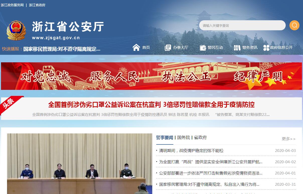浙江省公安厅成立于1949年8月21日,系浙江省人民政府主管全省公安工作的职能部门。其主要职责是:(一)贯彻执行党和国家有关公安工作的方针、政策、法律、法规和省委、省政府、公安部的指示,起草有关公安行政管理的地方性法规、规章草案,经审议通过后组织实施;部署、指导、监督全省公安工作。(二)掌握影响社会稳定、危害国内安全和社会治安的情况,分析形势,研究提出对策措施;组织、指导110接处警和公安信息工作。(三)主管和指导经济、刑事犯罪等侦查工作,组织、协调特别重大案件和涉外、跨省市重大案件以及上级交办案件的侦查工作。(四)指导、监督全省公安机关依法查处危害社会治安秩序行为,依法管理特种行业和内河水域,组织、协调对重特大治安事件和突发性事件的处置工作,管理集会、游行、示威活动;组织、指挥公安特警队的处突防暴工作。(五)负责中国公民出入境和外国人在中国境内居留、旅行的有关工作;承担口岸签证、签注工作。(六)负责全省公安武警边防部队的公安业务工作和相关建设,指挥和调动本省区域的公安武警边防部队执行地方治安管理等公安任务。(七)负责本省行政区域内的消防监督管理工作;领导公安消防队承担重大灾害事故和其他以抢救人员生命为主的应急救援工作。(八)指导、监督全省公安机关维护道路交通安全、交通秩序以及机动车辆、驾驶员管理工作;负责本省辖区高速公路的交通管理工作。(九)指导全省公安机关对国家机关、社会团体、企事业单位和重点工程的治安保卫工作以及群众性治安保卫组织的治安防范工作;负责全省保安服务活动的监督管理工作。(十)按照规定权限,组织、指导计算机信息系统及互联网安全保护管理工作,组织、指导网络犯罪侦查。(十一)指导、监督全省看守所、拘役所、拘留所、收容教育所、安康医院和公安机关管理的强制隔离戒毒所的工作;管理省看守所。(十二)规划、指导全省公安法制工作;指导、监督全省公安机关执法活动;负责指导、监督收容教养审批工作及公安机关承办当地政府劳动教养委员会的日常工作;承担行政复议、应诉、国家赔偿等案件的办理工作。(十三)组织、协调、指导全省禁毒、缉毒工作。(十四)组织、指导全省公安科学技术和信息化工作;负责全省公安机关信息通信勤务保障工作的规划协调和组织指导;负责全省社会公共安全技术防范的行业管理。(十五)指导、管理全省公安机关装备、被装、经费和基本建设等警务保障工作。(十六)领导全省公安消防、警卫部队建设;按规定权限,对武警部队执行公安任务实施领导和指挥。(十七)指导全省公安队伍建设,协管市公安机关领导干部,指导县级公安机关的领导班子建设;负责全省公安机关及其人民警察的表彰奖励、评优创模和人民警察内务条令的贯彻实施工作;制定全省公安教育训练发展规划,组织指导公安民警学历教育、在职训练、警察体育工作,指导全省公安警察院校建设;组织、协调、指导全省公安机关对外宣传工作。(十八)按规定权限实施对公安机关及人民警察的监督;领导全省公安机关督察工作,组织、指导维护民警执法权益工作;查处或督办公安队伍重大违纪案件;组织、指导全省公安内部审计工作。(十九)指导铁路、森林等公安机构的业务工作。(二十)承办省政府交办的其他事项。