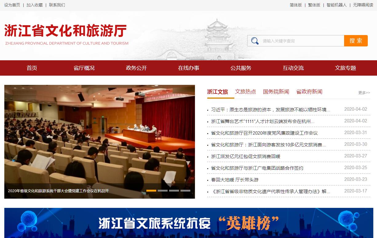浙江省文化和旅游厅主要职责:(一)组织起草文化和旅游地方性法规、规章草案,组织拟订政策措施。(二)统筹规划全省文化事业、文化产业相关门类和旅游业发展,拟订发展规划并组织实施,促进文化和旅游融合发展,推进文化和旅游体制机制改革。(三)践行社会主义核心价值观,把握正确导向,指导、管理文艺事业,指导具有导向性代表性示范性文艺作品的创作生产,推动各门类、各艺术品种发展。指导、协调全省性重大文化和旅游活动。(四)负责全省文化公共事业发展,推进全省公共文化服务体系建设和旅游公共服务建设,指导省重点及基层文化和旅游设施建设,深入实施文化和旅游惠民工程,统筹推进基本公共文化服务标准化、均等化。(五)指导、推进全省文化和旅游科技创新发展。推进文化和旅游行业数字化、标准化建设。负责全省文化艺术和旅游人才队伍建设工作。(六)负责全省非物质文化遗产保护,推动全省非物质文化遗产传承、普及、弘扬和振兴,推进全省优秀传统文化传承发展。(七)组织实施文化和旅游资源普查、挖掘、保护和利用工作。指导、推进全域旅游。(八)拟订文化产业相关门类和旅游产业发展规划并组织实施,指导文化和旅游重大项目建设,指导文化产业相关门类和旅游产业结构优化升级,促进文化和旅游产业高质量发展。(九)制定全省文化和旅游市场发展开发战略并组织实施,监督管理文化和旅游市场主体经营行为,依法规范文化和旅游市场,指导推动文化和旅游企业质量管理与品牌培育,推进行业精神文明和信用体系建设。(十)指导、管理全省文化和旅游对外及对港澳台交流、合作和宣传、推广工作,组织大型文化和旅游对外及对港澳台交流活动。(十一)指导监督全省文化市场综合执法,组织协调全省性、跨区域文化、出版、广播电视、电影、旅游等重大案件的查 处,督办大案要案,维护市场秩序。指导全省文化和旅游行业安全稳定工作,负责文化和旅游行业安全监督管理。(十二)管理省文物局。(十三)完成省委、省政府交办的其他任务。