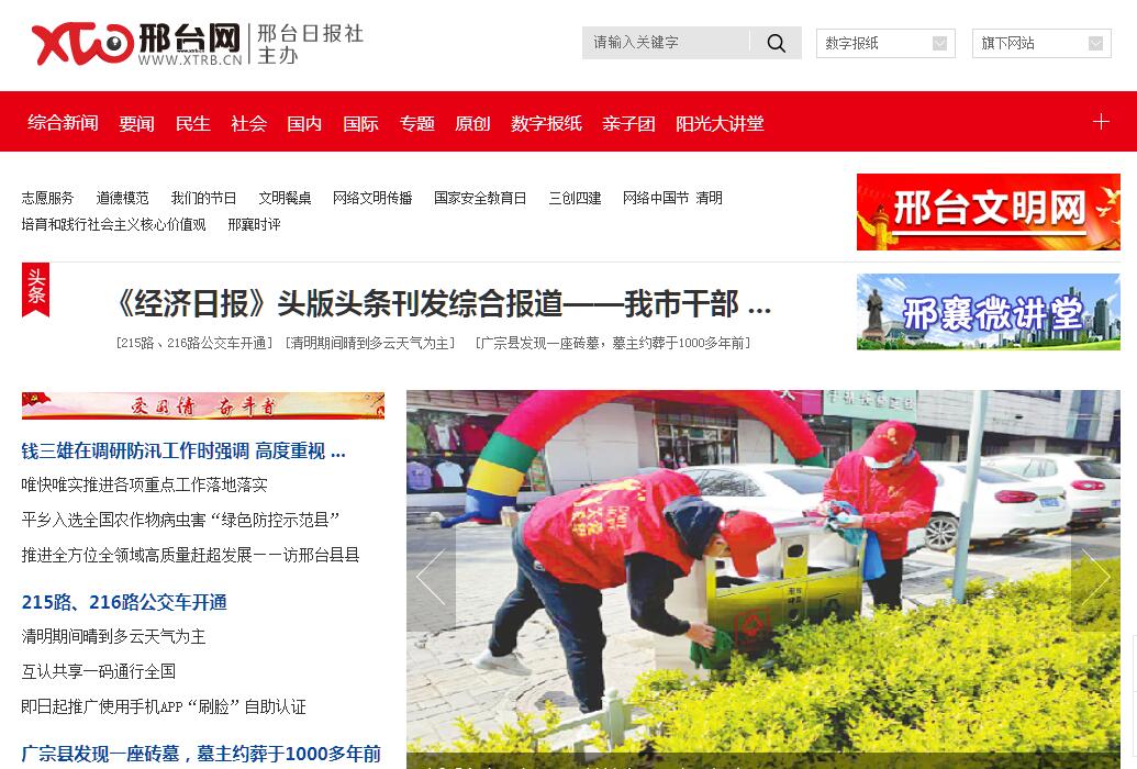 邢台网(www.xtrb.cn) 于2006年5月建成开通,由邢台日报社主办,邢台市最具影响力和公信力的新闻资讯综合门户网站,现拥有近10万名会员。邢台网以坚守网络舆论阵地,服务网民工作为己任。在新闻宣传报道上围绕城市建设中心,依托邢台日报社雄厚的新闻资源,为邢台人提供即时新闻和新鲜资讯,传播正能量。邢台网承办邢台首家网络问政平台“邢台民意通”,由邢台市文明办和邢台日报社主办,78家政府部门、事业单位线上答复网民咨询、求助、投诉,线下解决问题,年均答复问题5000件以上,受到网民的广泛关注与认可。邢台网积极参与和丰富城市生活。创办了亲子、美食、阳光讲堂、教育培训、人才交流、红娘、休闲游、购房、手工等特色频道,线上开发电商平台、社群交流、购物支付、线下开展丰富多彩的活动,形成了强大的影响力。同时,邢台网由传统网络媒体转型为移动互联新型媒体,实现了手机端与PC端同步,并运营了邢台网微博微信和亲子、美食、讲堂、红娘、手工等一主九辅新媒体矩阵,总关注人数近20万人。同时,邢台网由传统网络媒体转型为移动互联新型媒体,实现了手机端与PC端同步,并运营了邢台网微博微信和亲子、美食、讲堂、红娘、手工等一主九辅新媒体矩阵,总关注人数近20万人。