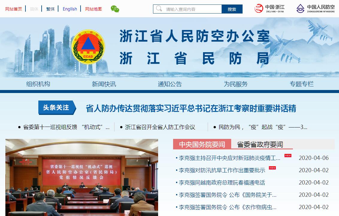 浙江省人民防空办公室(浙江省民防局),系省国防动员委员会的办事机构,也是省人民政府人民防空工作的主管部门。全省各市、县(市、区)设人民防空办公室,分别接受同级人民政府和军事机关的双重领导。浙江省人民防空办公室平时负责组织全省人民防空(民防)建设,战时组织开展城市人民防空袭斗争。其主要职责是:(一)贯彻执行国家人民防空工作的方针、政策和法律、法规、规章;研究起草人民防空行政管理的地方性法规、规章草案和其他规范性文件,经审议通过后组织实施;负责督促检查人民防空法律、法规的贯彻实施;依法督促检查城市建设、基本建设中贯彻执行人民防空要求的情况。(二)根据国民经济和社会发展规划以及国防建设需要,负责编制人民防空建设规划和计划,参与地下空间规划编制。(三)牵头制定《突发公共事件人员防护保障行动方案》,协调各成员单位工作,落实人员防护行动。(四)负责人民防空组织指挥工作。指导各地制定城市防空袭预案和各项保障方案,督促检查各市防空袭预案和各项保障方案的落实;负责制定人民防空演习计划、方案。 (五)会同有关部门提出重点防护目标并报省政府审批,指导重要经济目标单位制定防护措施和战时抢修方案。(六)指导各地组建训练通信、防化防疫、医疗救护、抢险抢修、消防、治安、运输等群众防空组织;指导人民防空志愿者队伍建设。(七)负责人民防空信息化建设。组织人民防空通信警报建设并实施计划、技术和质量管理;负责人民防空无线电管理;依法落实人民防空警报试鸣制度,指导各地组织实施警报信号发放工作和人防警报设施拆除、迁移审批。(八)组织人民防空工程建设。对人民防空工程(含结合民用建筑修建战时可用于防空的地下室、人防资金投资建设的人员疏散场所)建设实施计划、技术和质量管理;负责人民防空工程项目建议书、可行性研究报告、初步设计和施工图设计审批;负责地下空间开发兼顾人防要求审批;负责人防工程改造、拆除、报废审批;指导人民防空工程维护管理、平时的开发利用、战时的平战转换和城市地下空间开发建设中落实人民防空要求工作。(九)组织开展人民防空宣传教育。制定人民防空宣传教育计划,落实人民防空教育内容,会同国防教育部门指导国家机关、社会团体、企事业单位开展人民防空知识和技能教育;会同教育部门组织实施城镇初级中学、高等师范院校的人民防空知识和技能教育;指导协调省级有关应急主管部门做好突发公共事件中人员防护、避灾、避险、自救、互救等常识的宣传工作;指导、协调省级有关应急主管部门做好管理人员以及专业救援队伍的业务培训;组织人民防空干部和志愿者及群众的教育培训。(十)负责人民防空经费和资产管理。依法筹集人民防空建设经费,编制人民防空经费预决算;负责人民防空国有资产管理;开展内部审计;负责监督检查各地人民防空经费使用情况。(十一)负责人民防空科学技术管理工作。组织开展人民防空科学技术研究和学术交流,推广应用科研成果。(十二)承办上级人民防空主管部门和省政府、省军区、省国防动员委员会交办的其他事项。(十三)战时根据省委、省政府和军事指挥机构决定,发布人民防空的有关命令和指示。适时开设指挥所,实施有效指挥。