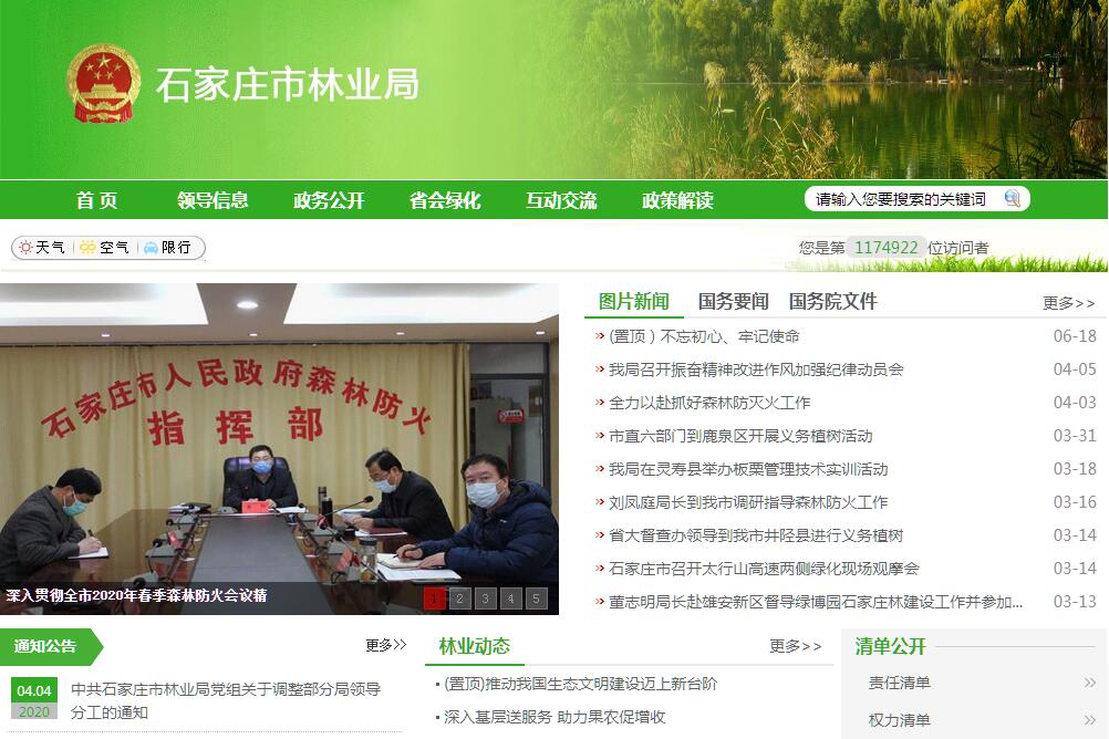 石家庄市林业局主要职责:(一)负责全市林业和草原及其生态保护修复工作,拟订全市林业和草原及其生态保护修复规划并组织实施,起草林业和草原方面地方性法规、政府规章草案,组织开展全市森林、草原、荒漠、湿地和陆生野生动植物资源动态监测与评价。(二)负责全市造林绿化工作,组织实施林业和草原重点生态保护修复工程,负责全市公益林和商品林的培育、划定和管理,组织、指导、监督全民义务植树、城乡绿化工作。负责林业和草原有害生物防治、检疫工作。(三)拟订全市林地保护利用规划并组织实施,监督执行采伐限额;管理市属国有林场森林资源;拟订全市湿地生态保护修复规划并组织实施,监督管理湿地的开发利用。(四)负责监督管理荒漠化防治工作,组织开展荒漠调查,拟订全市防沙治沙及沙化土地封禁保护区建设规划并组织实施,监督管理沙化土地的开发利用,组织沙尘暴灾害应急处置。(五)负责全市陆生野生动植物资源保护工作,组织开展资源调查,负责陆生野生动植物的救护繁育、栖息地恢复发展、疫源疫病监测,监督管理陆生野生动植物猎捕或采集、驯养繁殖或培植、经营利用。(六)负责全市各类自然保护地管理工作,拟订各类自然保护地规划,提出新建、调整各类市级以上自然保护地的审核建议并按程序报批,会同有关部门做好自然与文化双重遗产的申报工作,负责全市生物多样性保护相关工作。(七)负责推进全市集体林权制度、国有林场、草原等改革工作,负责农村林业发展、维护林业经营者合法权益,指导监督农村林地承包经营工作,负责开展退耕还林、天然林保护工作。(八)拟订林业和草原资源优化配置及木材利用等林业产业计划,负责林产品质量监督,负责生态扶贫相关工作。(九)负责全市国有林场基本建设和发展,组织开展林木种子、草种种质资源普查,组织建立种质资源库,负责良种选育推广,管理林木种苗、草种生产经营行为,监管林木种苗、草种质量;监督管理林业和草原生物种质资源、转基因生物安全、植物新品种保护工作。(十)负责全市森林公安工作,监督管理森林公安队伍,查处全市林业重大违法案件;负责林业综合行政执法和林区社会治安治理工作。(十一)拟订森林和草原火灾防治规划并组织实施,负责督导防火巡护、火情监测、火源管理及防火设施建设等工作,以及初期山火扑救工作,实现“打早、打小、打了”,组织开展全市森林和草原防火宣传教育、督促检查等防火工作。负责全市森林防火队伍建设和监督管理工作;必要时,可以提请市应急管理局,以市应急指挥机构名义,部署相关防治工作;承担市政府森林防火指挥部办公室日常工作。(十二)负责对上级拨付林业和草原资金及国有资产的监督管理工作,提出林业和草原预算内投资、省级和市级财政性资金安排建议,按权限审核规划内和年度计划内投资项目;贯彻执行林业和草原经济调节政策,组织实施林业和草原生态补偿工作。(十三)负责林业和草原科技推广、教育培训工作,负责林业和草原人才队伍建设工作。(十四)承办市政府交办的其他事项。