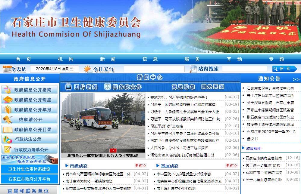石家庄市卫生健康委员会主要职责:(一)负责起草卫生健康、中医药事业发展地方性法规、政府规章草案,拟订全市卫生健康发展规划和措施,监督实施卫生健康行业技术标准和技术规范。统筹规划卫生健康服务资源配置,编制区域卫生健康规划并组织实施。组织实施推进卫生健康基本公共服务均等化、普惠化、便捷化和公共资源向基层延伸等政策措施。(二)协调推进全市深化医药卫生体制改革,研究提出全市深化医药卫生体制改革政策、措施的建议。组织深化公立医院综合改革,推进管办分离,健全现代医院管理制度,组织实施推动卫生健康公共服务提供主体多元化、提供方式多样化的政策措施,提出医疗服务和药品价格政策的建议。(三)制定并组织落实疾病预防控制规划、国家免疫规划以及危害人民健康的公共卫生问题的干预措施。负责卫生应急工作,组织指导突发公共卫生事件的预防控制和各类突发公共事件的医疗卫生救援。(四)组织拟订并协调落实应对人口老龄化政策措施,负责推进老年健康服务体系建设和医养结合工作。(五)组织实施国家基本药物政策和国家基本药物制度,开展药品使用监测、临床综合评价和短缺药品预警,提出全市基本药物价格政策的建议,参与拟订药品地方性法规、政府规章草案。配合省卫生健康委做好食品安全风险监测和食品安全地方标准跟踪评价工作。(六)负责职责范围内的职业卫生、放射卫生、环境卫生、学校卫生、公共场所卫生、饮用水卫生等公共卫生的监督管理,负责传染病防治监督,健全卫生健康综合监督体系。牵头《烟草控制框架公约》履约工作。(七)监督医疗机构、医疗服务行业管理办法的组织实施,建立医疗服务评价和监督管理体系。会同市有关部门实施卫生健康专业技术人员资格标准。负责医疗服务规范、标准和卫生健康专业技术人员执业规则、服务规范的组织实施。(八)负责计划生育管理和服务工作,开展人口监测预警,研究提出人口与家庭发展相关政策建议,落实计划生育政策。(九)负责全市卫生健康工作,负责基层医疗卫生、妇幼健康服务体系和全科医生队伍建设。推进卫生健康科技创新发展。(十)拟订中医药中长期发展规划,并纳入卫生健康事业发展总体规划和战略目标。(十一)负责市保健对象的医疗保健工作,负责市直部门有关干部医疗管理工作,负责重要会议与重大活动的医疗卫生保障工作。(十二)承办市委、市政府交办的其他事项。