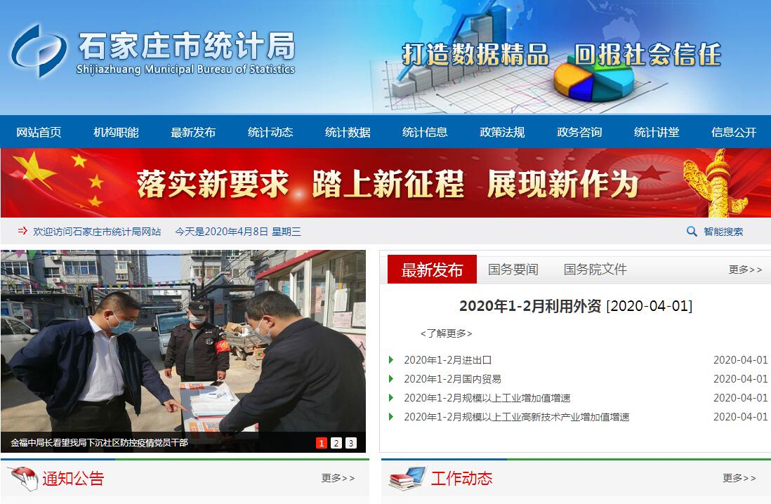 石家庄市统计局是主管全市统计工作的市政府工作部门。其主要职责是:(一)承担组织领导和协调管理全市统计工作,确保统计数据真实、准确、及时的责任。(二)拟订统计工作方面的地方性法规、政府规章草案,制定全市统计改革方案、统计建设规划、统计调查计划和地方统计调查标准、统计调查制度,监督检查统计法律、法规贯彻实施情况,组织实施统计法律法规宣传教育,依法查处统计违法行为,指导全市统计工作。(三)贯彻执行国家国民经济核算制度,组织实施全市国民经济核算制度和投入产出调查,核算全市生产总值,整理、测算和提供国民经济核算资料,监督管理全市国民经济核算工作。(四)组织实施全市人口、经济、农业等重大普查调查;研究提出重大市情市力普查和抽样调查计划并组织实施,汇总、整理和提供有关市情市力方面的统计数据。(五)组织实施农林牧渔业、农业产值、农产品产量、农业产业化、工业、建筑业、固定资产投资、批发和零售业、住宿和餐饮业、房地产业、服务业、能源、社会、人口、工资、科技、城镇劳动力、城镇就业、战略性新兴产业、高新技术产业、境外来中国大陆工作专家、利用外资、民营经济、县(市、区)社会经济基本情况、乡村社会经济、资源环境、经济社会重点问题等方面的统计调查,收集、汇总、整理和提供统计数据。(六)组织实施社会发展水平、县域经济发展、节能降耗、城镇化发展、全面小康及农村小康建设进程、妇女儿童等统计监测,收集、整理和提供统计数据。(七)综合整理和提供财政、金融、个体、私营以及混合经济税收、出口、地质勘查、文化教育、卫生、社会保障、公用事业、房屋、对外贸易等基本统计数据。(八)组织部门、地方的经济、社会、科技统计调查,统一核定、管理、公布全市性基本统计资料,定期发布全市国民经济和社会发展情况的统计信息,组织建立统计信息共享制度和发布制度。(九)对国民经济、社会发展、科技进步和资源环境等情况进行统计分析、统计预测和统计监督,向市委、市政府及有关部门提供统计信息和咨询建议。(十)依法审批或备案部门、地方统计调查项目、调查计划、调查方案;指导专业统计基础工作、统计基层业务和规范化建设;组织建立统计信息管理制度,建立健全统计数据质量审核、监控和评估制度,开展对重要统计数据的审核、监控和评估;依法监督管理涉外调查活动。(十一)贯彻执行国家、省统计信息库和网络的基本标准和运行规则;管理全市统计信息化系统和统计数据库体系;管理全市统计数据库网络;指导全市统计信息化系统建设。(十二)指导县(市、区)地方调查队业务工作,指导全市统计专业技术队伍建设,协助有关部门组织管理统计专业技术资格考试、职务评聘工作,协助管理县(市、区)统计部门领导班子;指导名录库建设、全面建成小康社会统计监测、社情民意调查、统计大数据的采集处理和运营维护等工作;监督管理统计经费和专项经费。(十三)承办市政府交办的其他事项。