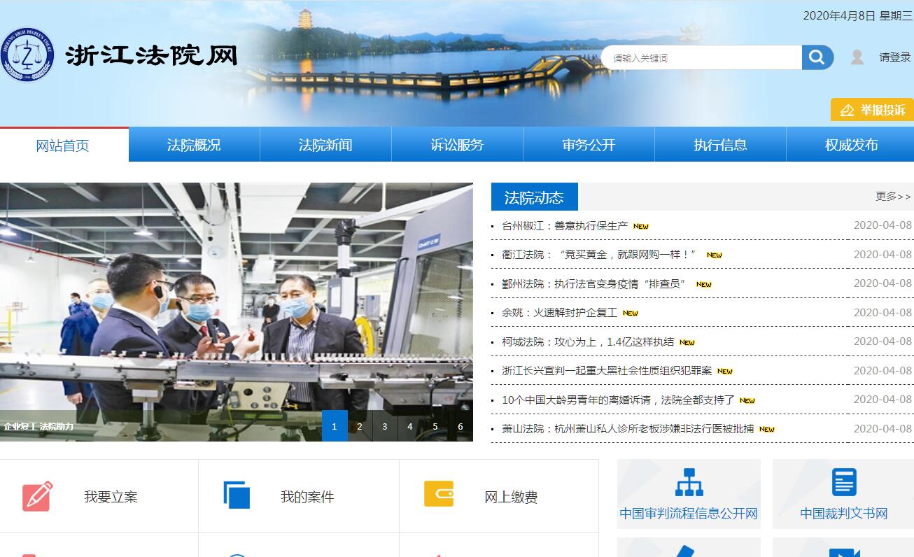 浙江省高级人民法院设在杭州市,成立于1950年,原在民生路办公,后移至圣塘路,1991年搬入省府路1号,2001年迁至马塍路5号。现办公审判大楼占地约27亩,由主楼、南楼、法官培训中心、东楼等四部分建筑构成,有大、中、小审判法庭19个。内设监察室、办公室、审判管理处、新闻宣传处、基层工作处、组织人事处、法官管理处、教育培训处、老干部处、立案庭、刑一庭、刑二庭、刑三庭、民一庭、民二庭、民三庭、民四庭、行政庭、审监一庭、审监二庭、执行庭、执行综合处、执行实施处、执行监督处、研究室、司法警察总队、司法技术鉴定处、司法行政装备管理处、机关党委、浙江法官进修学院,纪检组、政治部、执行局等机构。下辖杭州、宁波、温州、湖州、嘉兴、绍兴、金华、衢州、丽水、台州、舟山等11个中级人民法院,2个专门法院(即宁波海事法院和杭州铁路运输法院,并依托杭州铁路运输法院设立杭州互联网法院),91个基层人民法院。基层法院现共派出242个人民法庭。浙江省各级人民法院自成立以来,为巩固新生人民政权,建设社会主义新中国,建立和维护社会主义新型社会关系等作出了不可磨灭的贡献。改革开放的春风,为浙江法院揭开了崭新的一页。2017年,在省委领导、省人大及其常委会监督和最高法院指导下,在省政府、省政协及社会各界的关心支持下,全省法院高举习近平新时代中国特色社会主义思想伟大旗帜,坚持问题导向,聚焦人民群众反映强烈的问题和短板,集中力量,奋力改革破难,努力让人民群众在每一个司法案件中感受到公平正义,各项工作取得明显成效。全年共受理各类案件171万件,办结166.8万件,同比分别上升14.8%和14.7%,收案量全国第二、结案量全国第三,法官人均结案314.9件,名列全国第一。上诉率7.5%,二审改判发回率8.4%,生效裁判息诉率99%,主要办案质量、效率、效果指标继续保持在全国法院前列。当前和今后一个时期,是决胜全面建成小康社会、开启全面建设社会主义现代化国家新征程的关键阶段。全省法院的总体工作思路是:高举习近平新时代中国特色社会主义思想伟大旗帜,全面贯彻落实党的十九大精神和省十四次党代会决策部署,坚持以“八八战略”为总纲,紧紧围绕“努力让人民群众在每一个司法案件中感受到公平正义”的目标,不忘初心,牢记使命,全面加强审判执行工作,深化司法体制综合配套改革,打造过硬法院队伍,大力加强政治建设、规范化建设、智能化建设和基层基础建设,勇当新时代司法为民公正司法的排头兵,为加快“两个高水平”建设提供更加有力的司法保障。