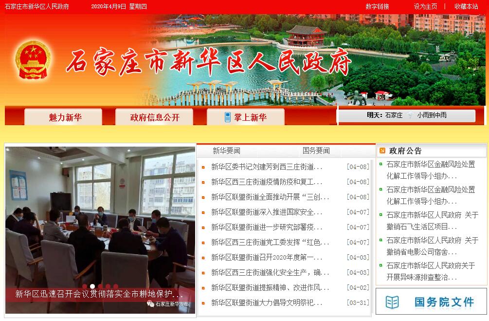 新华区位于石家庄市城区西北部,西望太行山,北依滹沱河,下辖15个街道和13个村、103个社区,总面积92平方公里,总人口69万人。新华区历史悠久,人文荟萃。赵佗先人墓名播港粤,毗卢寺明代贴金壁画驰名中外,解放纪念碑、大石桥、正太饭店、懋华亭见证了石家庄城市发展的光辉历程。清真寺、天主教堂、基督教福音堂等宗教场所,是全市宗教活动中心。辖区坐落着河北经贸大学、河北政法学院等高等院校,省医院、省二院、市二院等重点医疗机构,电子工业部第十三研究所、省农科院等科研院所,省人社厅、省民政厅、省卫生厅等省直单位。新华区生态良好,环境优越。地处上风上水,绿树荫荫,碧波荡漾,拥有植物园、水上公园等13座公园,民心河、南水北调等五大水系交相辉映;建成区绿地率、绿化覆盖率、人均公园绿地面积全市第一,得天独厚的生态环境优势,被誉为省会“后花园”。新华区交通便捷,物流畅达。24条市区主干道纵横交错,石闫、石青公路、西柏坡高速等西北主要出市口四通八达,石环公路、石太高速、京广铁路穿越而过,中华北大街机场快速路贯通南北,和平路高架桥、西北二环、西北三环等城市快速路进一步提升了城区交通承载能力。新华区经济活跃,产业聚集。现代服务业是全区经济发展的基本定位,也是发展的核心和方向。辖区新华集贸中心市场被中国商联会授予“华北品牌服装第一市”和“中国优秀示范市场”荣誉称号,目前市场交易额达400亿元,网上交易额达到30亿元。近年来,通过大力招商引资,成功实施了河北航空城、苏宁广场、华强广场、金指数广场、中储广场、互联网大厦等一批城市综合体项目和大型商业商务项目;河北航空、壳牌石油、沃尔玛、平安银行、中石油、中电建、中铁、中建等一批国内外500强企业和央企总部纷纷落户我区。新华区蓄势待发,潜力巨大。中央商务区建设列为市委1号工程,空军石家庄机场搬迁、毗卢寺公园建设、小清河工程实施、城市扩规修编等事关新华区未来发展的关键工作列为省市重点工程;空军石家庄机场搬迁能直接释放将近4平方公里的土地,并彻底解决近20平方公里区域的限高问题;城市调规将为我区增加约15.3平方公里的规划面积,困扰我区多年的“航空限高、水源地限建、规划圈限批”等发展硬约束将迎来历史性转折,长期积累下来的资源优势将得到集中释放。新华区政务高效,服务一流。区委、区政府高度重视营商环境建设,出台了《促进总部企业和楼宇经济发展实施意见》《促进科技型企业、高新技术企业发展扶持办法》和《促进实体经济发展实施意见》,为辖区企业提供全方位支持,提供最便捷、最优质的政务服务。针对企业落户,我们建立了企业入驻绿色通道,全程代办帮办,提供“一站式审批、一条龙服务”;企业落户后,我们还将开展跟踪服务、保姆服务,企业有求,各部门必应、必帮,扫除影响企业发展的一切障碍,让企业专心发展壮大。