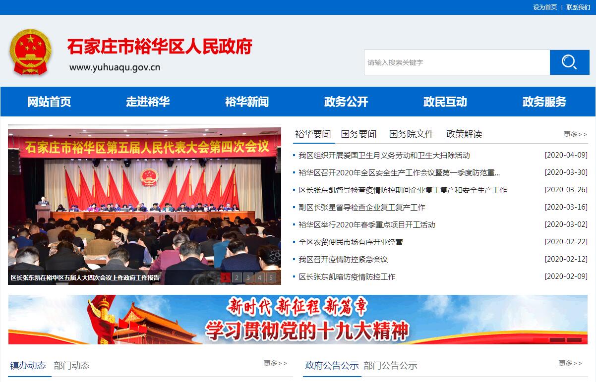 裕华区地处石家庄东南部,是2001年3月21日省会区划调整成立的新城区,总面积60.8平方公里(不含高新区),常住人口56.5万,辖1个镇、9个街道、5个行政村、103个社区。经过建区18年来的快速发展,经济发展、城区建管、民生社会事业等各项工作均取得较好成绩。一是投资环境优良。市区 “两横五纵”,主干道贯通我区,建设中的地铁3号线、4号线穿区而过。东临京港澳高速,距离正定机场30分钟车程,西邻石家庄新客站,与北京、天津、郑州、太原等周边城市形成了一小时立体交通圈。世纪公园、体育公园等大小10余座公园分布辖区,绿化覆盖率达到50.67%,人均公园绿地面积达到17平米,均位居全市之首。城市管理综合考评在全市实现了“十六连冠”。所有高频行政事项已经达到“最多跑一次”或“一次都不跑”,多项先进经验在全市推广。2019年上半年,PM2.5平均浓度为73微克/立方米;综合指数为7.33均位居市内区第一;优良天数84天,优良率全市第一。二是经济发展迅速。2019年上半年,一般公共预算收入完成29.3亿元,同比增长18.1%,增速市内区排名第一;固定资产投资同比增长10.4%,增速市内区第一;规上服务业营业收入同比增长32.8%,对全市的贡献率达到38.9%,位居全市第一。大力实施创新驱动发展战略,国家级众创空间达到8家,占全市28%。成功入选全省首批“双创示范区”,在全省168个县(市、区)进行的首次科技创新能力监测评价中被评为A类。三是教育资源优质。河北师范大学、河北科技大学、河北地质大学以及核四院等高校和科研院所坐落我区,石家庄外国语学校、40中、44中、27中等省会名校云集裕华。形成了一校一品,义务教育实现了均衡发展。中考成绩连创佳绩,教育强区名副其实,教育已成为裕华区一张响亮的名片。四是现代产业发达。按照石家庄市构建“4+4”产业发展格局的要求,立足自身产业基础和优势,制定了“3+1”产业发展规划,即“做大现代服务业,做优科技创新产业,做强文化创意健康养老产业,培育节能环保产业”四大产业对经济贡献率达到80%以上,已经成为我区经济发展的动力源。五是民生加速发展。就业和社会保障水平不断提高,城镇新城镇登记失业率控制在2.9%以内。低保救助标准率先调整到位,特困人员供养标准全市第一,百岁老人高龄补贴提高至1000元/月,居全省之首。紧密型医联体建设成效显著,在全省率先开展“院府”合作新模式。全力做好退役军人管理服务工作,荣获省、市退役军人管理服务工作先进单位称号。