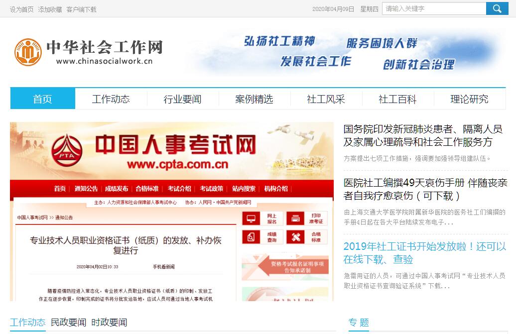 | 网站简介: 中华社会工作网由中华人民共和国民政部社会工作司主办的行业管理服务平台,旨在通过“互联网+”的方式,为全国的社会工作从业者提供行业资讯服务、在线学习服务、项目管理服务以及互动交流服务,力图打造一个权威、专业、实用、高效、安全的社工服务平台。 |