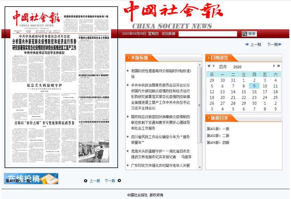 | 网站简介: 中国社会报电子版,中国社会报数字报。《中国社会报》1986年4月6日正式创刊。民政部主管。国内刊号:CN11-0021 。每周32个版,周一至周五出版。创办以来,《中国社会报》始终是民政舆论宣传的主渠道、主阵地、主力军。主要任务是:以习近平新时代中国特色社会主义思想为指导,贯彻习近平关于党的新闻舆论工作的重要讲话精神,宣传党中央国务院关于民生民政工作的重要方针政策和重大决策部署,宣传民政部党组的各项工作部署。报道地方各级民政部门的新实践新探索,反映民政服务对象的新诉求新期盼,展示民政工作者的新作为新风貌。积极挖掘、推广、宣传民政系统优秀典型,充分发挥先进人物的榜样作用,教育和激励各级民政干部努力践行“民政为民、民政爱民”工作理念,全心全意做好党和人民的民政事业,为民政事业改革发展营造良好的舆论氛围。为实现党的总任务、总目标服务。《中国社会报》的读者对象是各级党政领导、各级民政部门干部、各类民政服务机构从业人员、部分民政服务对象和关心民政事业的各界人士。2018年发行量14.8万份。 |