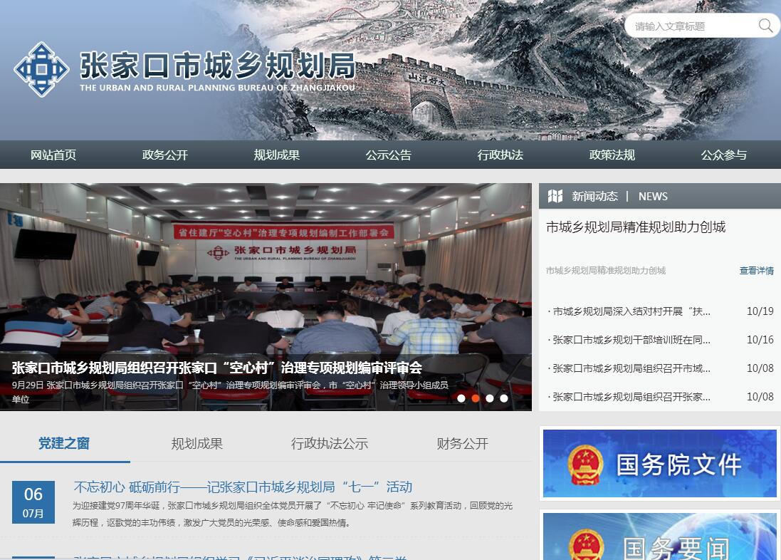 张家口市城乡规划局主要职责:(一)贯彻落实国家、省城乡规划的法律、法规、规章和方针政策;负责起草本市城乡规划相关的地方性法规、政府规章,拟定相关管理规范和技术规定,并组织实施和监督。(二)组织编制本市城乡总体规划、分区规划、控制性详细规划、重点地区修建性详细规划、总体城市设计和详细城市设计,并进行动态评估和补充完善;组织编制近期建设规划、重点区域规划和年度实施计划;组织指导有关部门编制城市基础设施、公共服务设施、公共安全设施、城市地下空间等专项规划;承担对历史文化名城、名镇、名村、历史文化街区、历史建筑及传统村落保护规划的审查报批和保护监督。(三)组织研究本市城乡空间发展战略,协调、规划城乡空间资源配置;承担全市重大建设项目的选址论证工作;负责县城及管理区总体规划、控制性详细规划、各类专项规划的审查、备案和报批工作;负责组织指导全市建制镇总体规划的审查;负责村镇规划的管理工作。(四)负责中心城区各建设用地地块规划条件的确定工作,结合城市设计,综合考虑天际线、高度、色彩、建筑风格等控制要素,确定地块的开发强度。(五)负责审查本市城市集建区所有建设工程(含各类建筑物、构筑物、道路、管线、广场、停车场、绿化、雕塑、建筑物外立面装修及法律法规规定的其他工程建设项目)的修建性详细规划和规划设计方案;承担张家口市规划建设委员会办公室和市城乡规划专家咨询委员会的的具体工作;研究、论证本市城乡建设发展重大问题的基础工作。(六)负责全市规划地理信息系统及空间数据库的建设与管理;拟订城乡规划领域信息化建设发展规划,并组织实施;承担城乡规划展览馆的管理工作。(七)负责本市城乡规划的宣传和政府信息公开工作;负责规划编制与管理中的公示、听证等公众参与工作;负责对各县区城乡规划主管部门城乡规划工作的监督检查和指导。(八)承办市政府交办的其他事项。