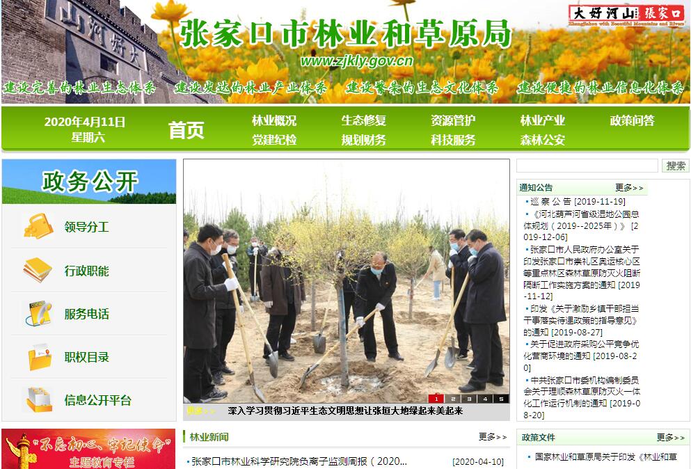 张家口市林业和草原局主要职责:一、负责全市林业和草原及其生态保护修复的监督管理。拟订全市林业和草原及其生态保护修复的政策、规划、地方标准并组织实施,组织落实全省有关林业和草原地方性法规、政府规章。参与起草全市相关地方性法规、政府规章草案。组织开展全市森林、草原、湿地、荒漠和陆生野生动植物资源动态监测与评价。二、组织全市林业和草原生态保护修复和造林绿化工作。组织实施林业和草原重点生态保护修复工程,指导公益林和商品林的培育,指导、监督全民义务植树、城乡绿化工作。指导林业和草原有害生物防治、检疫工作。承担林业和草原应对气候变化的相关工作。三、负责全市森林、草原、湿地资源的监督管理。组织编制全市林木采伐限额,经省政府审核报国务院批准后监督执行。负责林地使用的事中事后监管。指导各县(区)编制县级林地保护利用规划并监督实施。监管市属国有林场森林资源。负责全市草原禁牧、草畜平衡和草原生态修复治理工作,监督管理草原的开发利用。负责全市湿地生态保护修复工作,拟订全市湿地保护规划和相关地方标准并监督实施,监督管理湿地的开发利用。四、负责监督管理全市荒漠化防治工作。组织开展荒漠调查,组织拟订全市防沙治沙及沙化土地封禁保护区建设规划,拟订相关地方标准和规定并监督实施,监督管理沙化土地的开发利用,组织沙尘暴灾害预测预报和应急处置。五、负责全市陆生野生动植物资源监督管理。组织开展陆生野生动植物资源调查,指导全市陆生野生动植物的救护繁育、栖息地恢复发展、疫源疫病监测,监督管理全市陆生野生动植物猎捕或采集、驯养繁殖或培植、经营利用。六、负责监督管理全市各类自然保护地。拟订全市各类自然保护地规划和相关地方标准。承办国家公园规划、管理和监督,负责省政府委托市政府代理行使所有权的国家公园等自然保护地的自然资源资产管理和国土空间用途管制。提出新建、调整各类市级以上自然保护地的审核建议并按程序报批,组织审核世界自然遗产的申报,会同有关部门审核世界自然与文化双重遗产的申报。负责全市生物多样性保护相关工作。七、负责推进全市林业和草原改革相关工作。拟订集体林权制度、国有林场、草原等重大改革意见并监督实施。拟订农村林业发展、维护林业经营者合法权益的政策措施,指导监督农村林地承包经营工作。开展退耕(牧)还林还草,负责天然林保护工作。八、拟订全市林业和草原资源优化配置及木材利用政策,拟订相关林业产业地方标准并监督实施,组织、指导林产品质量监督,指导生态扶贫相关工作。九、指导全市国有林场基本建设和发展,组织开展林木种子、草种种质资源普查,组织建立种质资源库,负责良种选育推广,管理林木种苗、草种生产经营行为,监管林木种苗、草种质量。监督管理林业和草原生物种质资源、转基因生物安全、植物新品种保护。十、指导全市森林公安工作,监督管理森林公安队伍,指导全市林业重大违法案件的查处,负责相关行政执法监管工作,指导林区社会治安治理工作。十一、负责落实全市综合防灾减灾规划相关要求,组织编制全市森林和草原火灾防治规划和防护标准并监督实施,指导开展防火巡护、火源管理、防火设施建设等工作。组织指导全市森林和草原防火宣传教育、监测预警、督促检查等防火工作。负责发布森林和草原火险、火灾信息。必要时,可以提请市应急管理局,以市应急指挥机构名义部署相关防治工作。十二、监督管理林业和草原中央、省和市级资金及国有资产,提出全市林业和草原预算内投资和中央、省、市级财政性资金安排建议,按权限组织申报规划内和年度计划内投资项目。参与拟订林业和草原经济调节政策,组织实施林业和草原生态补偿工作。十三、负责全市林业和草原科技、教育和外事工作,指导全市林业和草原人才队伍建设,组织实施林业和草原国际交流与合作事务,承担湿地、防治荒漠化、濒危野生动植物等国际公约履约工作。十四、完成市委、市政府交办的其他任务。