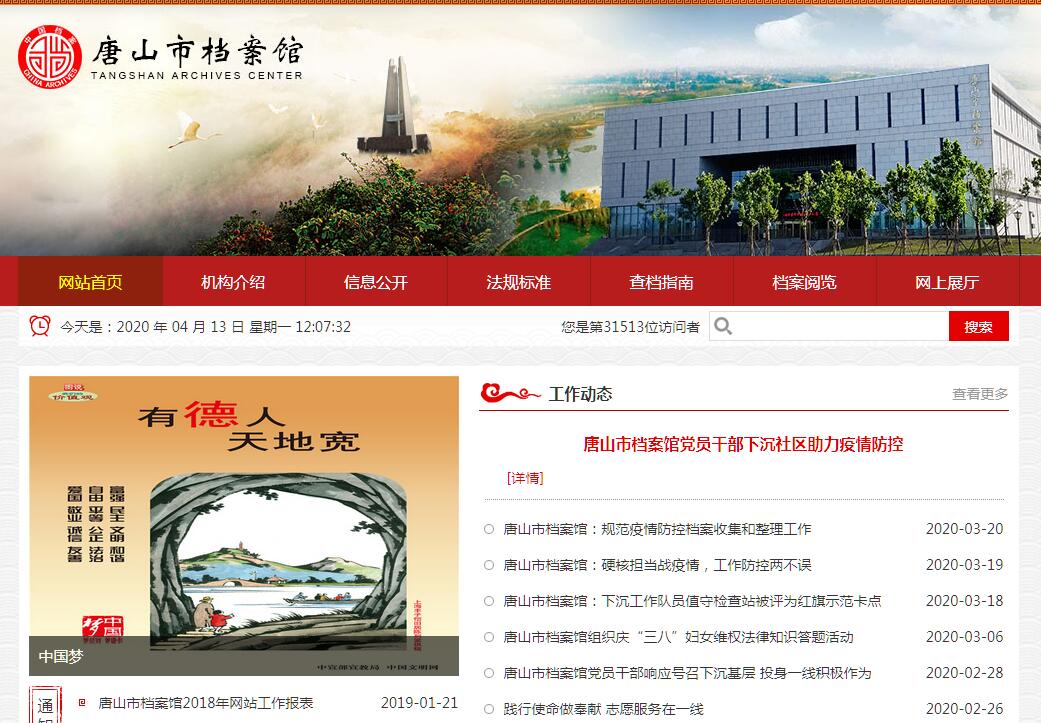 唐山市档案馆是市政府直属事业单位,内设7个处室,编制36人,行使全市档案事业管理、档案收集、保管、利用等职能,根据市政府办公厅委托,承担市档案局行政管理职责,是唐山市爱国主义教育基地。唐山市档案馆位于南湖文化广场,占地29.45亩,建筑面积1.45万平方米,2017年6月9日投入使用。库房面积5532平方米,包括纸质档案库、珍品档案库、大地震专题档案库、图书资料库、音像档案库等共12个档案库房,馆藏文书档案34.94万卷、4.25万件,图书报纸4.14万册(本),照片档案2.43万张。对外服务区2167平方米,其中档案查阅大厅,面向社会提供政府公开信息及档案查档服务;唐山历史发展展厅通过展示唐山地区各历史时期珍贵的档案资料,展现唐山历史发展历程;临时展厅将举办不同类型的展览;多功能报告厅可开展学术讲座、会议、培训等活动;青少年体验区设置家庭成长档案动画片和VR3D游戏环节,以寓教于乐的体验模式,向青少年普及档案知识。业务技术用房2336平方米,其中档案接收整理室开展档案接收、鉴定,整理、分类、编目等工作。消毒室在档案入库前,对档案进行灭菌消毒处理。数字化加工室对接收的各单位纸质档案进行扫描电子化。仿真复制室配有高仿真数字采集设备,开展档案仿真复制,替代原件进行开发利用。裱糊修复室对破损档案进行裱糊修复。口述室配有专业的音视频采集设备,对中央、省、市电视台影像进行采集,录制档案业务培训课件,同时开展口述档案的征集工作。唐山市档案馆以建设“全国示范数字档案馆”和“智慧档案馆”为目标,通过构建档案安全保护一体化和“智慧档案馆”两大管理平台实现档案智能管理和服务。档案安全保护一体化管理平台主要实现对库区的智能管理,包括温度、湿度、消毒、通风、视频监控、出入权限、红外防盗、消防、实体档案智能管理及应急对讲管理共10个子系统,采用实体档案电子标签管理、轨道追踪摄像、视频对讲、高压细水雾灭火系统四项前沿技术设备,确保库区档案的绝对安全。“智慧档案馆”管理平台包括标准化网络办公、档案资源管理、电子档案查阅、电子公文交换、电子档案移交接收、档案信息利用中心等子系统,全面提高档案的智能管理水平和服务水平。目前,市县两级完成数字化扫描共计151.6万卷,数字化率达到75%,其中市档案馆完成34.1万卷、2387万页,数字化率达到96.5%。多年来,唐山市档案馆为领导决策和各项事业提供了良好的服务,受到了各界好评。六次荣获“全国档案系统先进集体”称号,连续八次被评为省级“文明单位”,连年被评为省级档案工作先进单位、市级“文明单位”、“依法行政先进单位”等。