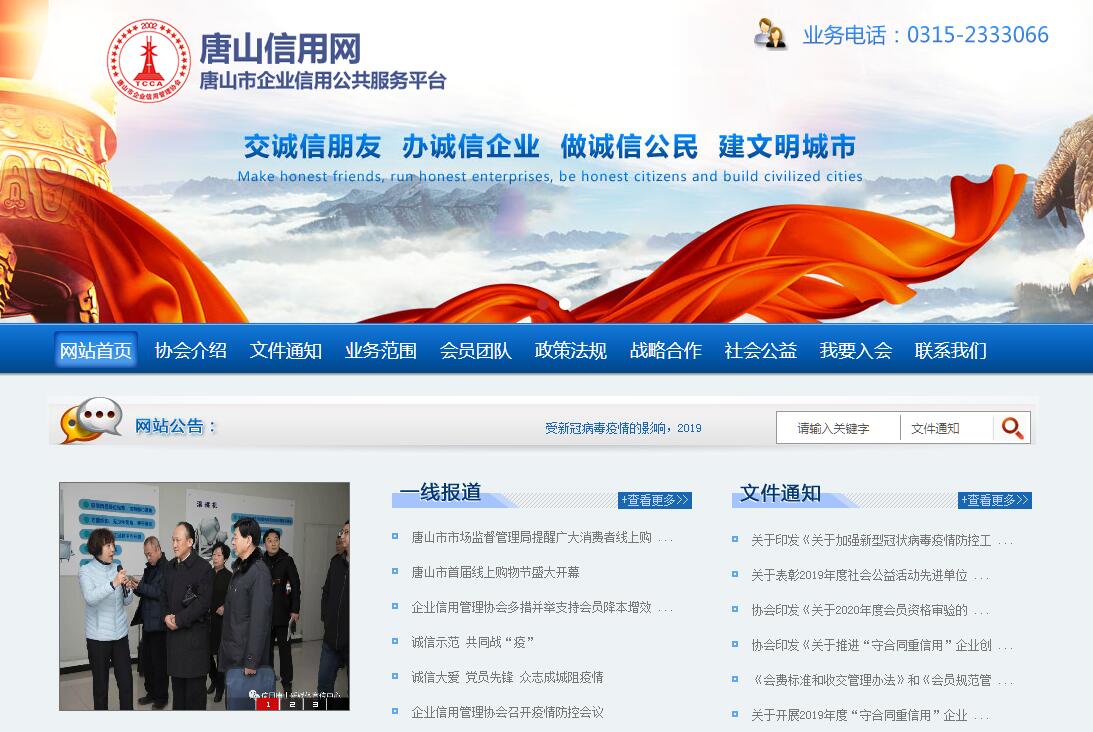 唐山市企业信用管理协会成立于2002年10月,全市188家“守合同重信用”企业改为会员制,是河北省首家企业信用管理行业的社会团体。协会成立以来,大力倡导诚信兴商,积极参与社会信用体系建设,2003年5月开通官方网站唐山信用网(现唐山市企业信用公共服务平台)网址:http:// www.tsxw.net。合纵连横与外省市多家信用行业和信用组织建立了业务联系。积极参与国家“信用管理师”职业资格标准的制定论证。2004年12月,唐山市工商行政管理局与人民银行唐山市中心支行等10多家党政机关部门联合成立唐山市企业信用评价委员会,制定《唐山市企业信用评价办法》,授权唐山市企业信用管理协会开展企业信用评价业务。2005年8月作为国内信用管理服务机构收录于《中国信用年鉴》(首卷)。先后荣获多项先进荣誉,被河北省民政厅评为AAA级信用社团组织。在市民政局的业务指导下,协会先后搭建了“三个平台”。在市信用办、市场监督管理局的支持下,开展“守合同重信用”创建活动,搭建了信用联合激励平台;在市文明办的支持下,协会成立了新媒体宣传中心,开展了“诚信建设万里行、信用实践走基层”主题系列活动,搭建了宣传平台。在市工商联的关怀下,信用协会加入了唐山市工商业联合会,联合唐山市各大银行搭建了金融服务平台。目前,协会在全市19个县(市)区、开发(管理)区设有20多个办事处和工作站,企业和个人会员涉及全市各行各业、各类市场主体,一大批企业信用志愿者活跃在企业信用建设的第一线。