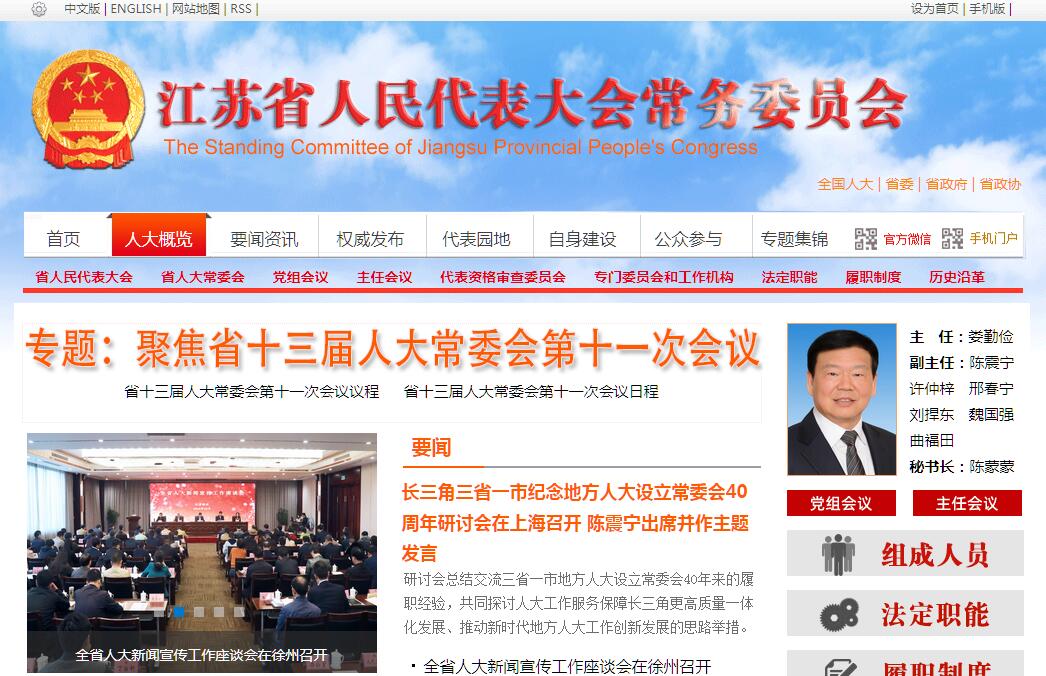 江苏省人民代表大会是江苏省地方国家权力机关,对人民负责,受人民监督。由13个设区的市人民代表大会和驻苏部队选出的代表组成,每届任期五年。省人民代表大会会议由省人民代表大会常务委员会召集,每年至少举行一次会议。省人民代表大会举行选举和通过决议,以全体代表的过半数通过。按照《中华人民共和国宪法》和《中华人民共和国各级人民代表大会和地方各级人民政府组织法》的规定,江苏省人民代表大会行使下列职权:1、根据本行政区域的具体情况和实际需要,在不同宪法、法律、行政法规相抵触的前提下,可以制定和颁布地方性法规,报全国人民代表大会常务委员会和国务院备案。2、批准各设区的市人民代表大会及其常务委员会制定的地方性法规,并报全国人民代表大会常务委员会和国务院备案。3、在本行政区域内,保证宪法、法律、行政法规和全国人民代表大会及其常务委员会决议的遵守和执行,保证国家计划和国家预算的执行;4、审查和批准本省国民经济和社会发展计划、预算以及它们执行情况的报告;5、讨论、决定本省的政治、经济、教育、科学、文化、卫生、环境和资源保护、民政、民族等工作的重大事项;6、选举省人民代表大会常务委员会的组成人员;7、选举省长、副省长;8、选举省高级人民法院院长和省人民检察院检察长,选出的省人民检察院检察长,须报经最高人民检察院检察长提请全国人民代表大会常务委员会批准;9、选举本省出席全国人民代表大会的代表;10、听取和审查省人民代表大会常务委员会的工作报告;11、听取和审查本级人民政府和人民法院、人民检察院的工作报告;12、改变或者撤销省人民代表大会常务委员会的不适当的决议;13、撤销省人民政府的不适当的决定和命令;14、保护社会主义的全民所有的财产和劳动群众集体所有的财产,保护公民私人所有的合法财产,维护社会秩序,保障公民的人身权利、民主权利和其他权利;15、保护各种经济组织的合法权益;16、保障少数民族的权利;17、保障宪法和法律赋予妇女的男女平等、同工同酬和婚姻自由等各项权利。