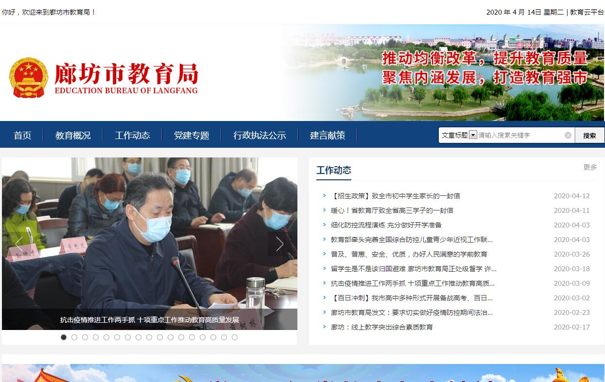 廊坊市教育局主要职责:(一)贯彻执行党和国家、省市委的教育方针、政策、法律法规,拟订全市教育改革和发展的地方性政策和规划,并组织实施。(二)负责教育系统党的政治建设、思想建设、组织建设、作风建设、纪律建设和制度建设。(三)承担直属单位基层党组织和党员队伍建设工作。(四)指导全市高校意识形态和党的宣传教育工作,指导和督促党的统一战线方针政策在高校的贯彻落实。(五)按照干部管理权限,协助市委做好教育系统领导人员的管理工作。指导学校干部队伍建设工作。(六)负责各级各类学校学生和教师的思想政治工作,指导全市学校思想政治工作队伍建设,指导高校思想政治理论课程和中小学德育课程教育教学。(七)统筹管理教育系统人才工作。(八)负责教育系统安全稳定和校园及周边综合治理工作。(九)负责直属单位的巡察工作。(十)负责教育基本信息的统计、分析、发布。统筹规划和协调管理各级各类教育,指导各级各类学校的教育教学改革。组织指导教育系统对外交流与合作。(十一)负责学前教育、基础教育、高中教育、职业教育、成人教育、师范教育、高等教育、特殊教育的指导和综合管理。负责全市各级各类学校的办学体制、管理体制、课程体制、用人制度、教育教学的综合改革和协调指导。负责教育督导工作。负责全市语言文字工作的规划指导、统筹协调和监督管理。(十二)负责义务教育的指导与协调,推进义务教育均衡发展和促进教育公平,全面实施素质教育。指导职业教育的发展与改革,深化职业教育教学改革,提高职业院校的办学水平和质量。负责民办教育的统筹规划、综合协调和宏观管理,完善民办教育管理的政策措施,规范办学秩序。负责对民办高中段学校、初中学校、中等专业学校的监督管理。(十三)负责教育系统人才队伍、教师队伍、校长队伍的建设和管理,推进教育系统人事制度改革,组织实施各级各类教师资格标准。负责指导师范类大中专毕业生就业工作。(十四)负责本部门教育经费的统筹管理和内部审计,指导教育经费预决算工作,监督教育经费的筹集、管理和使用;负责统筹规划和管理教育系统基本建设和设施的配置及计划统计工作。(十五)负责全市教育督导工作,组织实施对县级政府履行教育职责评价,组织开展全市各级各类教育的督导评估、检查验收、质量监测等工作。(十六)统筹指导少数民族教育工作,协调对少数民族和少数民族地区的教育援助。(十七)指导各级各类学校的党建、思想政治、宣传统战和维护稳定以及德育、体育、卫生与艺术教育、国防教育工作。负责各级各类学校的安全监督管理。(十八)负责指导组织中等层次以上各类教育招生考试工作。指导推动教育教学的理论研究和教育科研工作。(十九)指导全市老年教育工作。(二十)承办市委、市政府交办的其他事项。