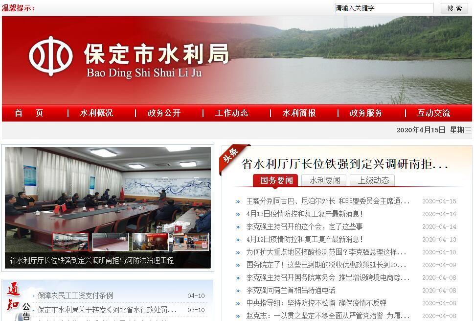 保定市水利局主要职责是:1、拟定全市水利工作的方针政策、发展战略、中长期规划和年度计划,组织起草有关水事规章制度并监督实施。2、统一管理全市水资源(含空中水、地表水、地下水)。组织拟定全市和跨县(市)水中长期供求计划、水量分配方案并监督实施;组织有关国民经济总体规划、城市规划及重大建设项目的水资源和防洪论证工作;组织实施取水许可制度和水资源费征收制度;发布全市水资源公报。3、拟定全市用水计划和节约用水管理办法,编制节约用水规划,拟定有关标准,组织、指导和监督全市节约用水工作。4、按照国家资源与环境保护有关法律法规和标准,拟定和实施水资源保护规划,重点搞好城市水源地保护;组织水功能区划分和向不同功能区水域排污的控制;监测河流库淀水量、水质,审定水域纳污能力,提出限制排污总量的意见。5、组织、指导水政监察和水行政执法;协调并仲裁部门间和县(市)间水事纠纷。6、拟定全市水利行业经济调节措施;对水利资金的使用进行宏观调节;指导水利行业供水、水电及多种经营工作;贯彻执行国家有关水利的资产、价费、税收、信贷、财务等政策,配合有关部门制定本市政策措施并组织实施;按照国家有关规定监督管理水利系统国有资产。7、负责全市大中型水利基建项目建议书、可行性报告的立项申报和报批;组织重点水利工程规程、规范并监督实施。8、组织、指导全市水利设施、水域的管理与保护;组织指导主要河道、水域的治理和开发;负责全市水利工程建设的行业管理;组织建设和管理具有控制性的或跨县(市)的重要水利工程;组织、指导水库、水电站、大坝的安全监管。9、指导全市农村水利工作;组织协调农田水利基本建设、城乡供水和农村水利社会化服务体系建设。10、组织全市水土保持工作;研究制定水土保持规划,组织水土流失的监测和综合防治。11、负责全市水利系统水电站、农村水电电气化的建设、生产和行业管理。12、负责管理全市水利科技、职工教育及对外技术经济合作与交流;指导全市水利队伍建设。13、承担市防汛抗旱指挥部的日常工作;组织、协调、监督、指导全市防汛抗旱工作,对主要河道和重要水利工程实施防汛抗旱调度。14、负责对水库、灌区的统一管理,协调各水库、灌区与有关县(市、区)之间的关系。15、负责全市水库移民工作。16、承办市政府交办的其他事项。