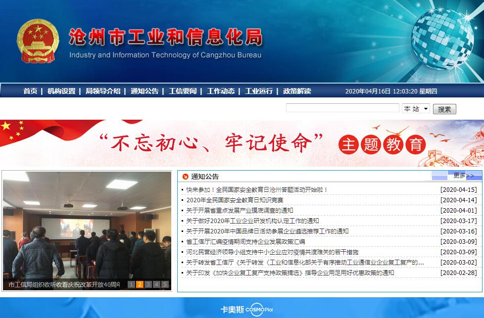 沧州市工业和信息化局为市政府工作部门,机构规格正处级。沧州市工业和信息化局贯彻落实中央、省委、市委关于工业和信息化工作的方针、政策和决策部署,坚持和加强党对工业和信息化工作的集中统一领导。其主要职责是:(一)提出全市新型工业化发展战略和政策,协调解决新型工业化进程中的重大问题,拟订全市工业的发展规划并组织实施,推进产业结构战略性调整和优化升级,推进信息化和工业化融合。(二)制订全市工业行业规划、计划和产业政策并组织实施,提出优化产业布局、结构的政策建议,推进现代产业体系建设,组织实施行业技术规范和标准,指导行业质量管理工作。(三)监测分析全市工业运行态势,统计并发布相关信息,进行预测预警和信息引导;协调解决行业运行发展中的有关问题并提出政策建议;负责工业用电监测;负责工业应急管理、产业安全有关工作。(四)负责提出全市工业固定资产投资规模和方向(含利用外资和境外投资),国家和省及市财政性建设资金安排的意见;按照规定权限,负责国家、省和市规划内及年度计划规模内工业固定资产投资项目的相关工作。(五)负责对中小企业和民营经济促进工作进行指导、综合协调和监督检查,会同有关部门拟订促进中小企业发展和民营经济发展的相关政策和措施并组织实施,协调解决有关重大问题。(六)贯彻落实国家政策和标准,拟订高技术产业中涉及生物医药、新材料、信息产业等规划并组织实施;指导行业技术创新和技术进步,以先进适用技术改造提升传统产业;推进实施有关国家、省、市科技重大专项,推进相关科研成果产业化。(七)负责全市振兴装备制造业的组织协调,贯彻执行国家、省重大技术装备发展和自主创新规划、政策,依托国家、省、市重点工程建设协调有关重大专项的实施,推进重大技术装备国产化,指导引进重大技术装备的消化创新。(八)拟订并组织实施全市工业能源节约和资源综合利用促进政策并组织实施,参与拟订能源节约和资源综合利用促进规划,组织协调相关重大示范工程和新产品、新技术、新设备、新材料的推广应用。(九)推进全市工业体制改革和管理创新,提高行业综合素质和核心竞争力,指导工业行业加强安全生产管理;负责民爆行业生产流通的监督管理和安全生产工作;承担履行《禁止化学武器公约》的组织协调工作。(十)承担电子信息产品制造行业管理工作,推动全市软件业、信息服务业和新兴产业发展;统筹推进全市工业领域信息化发展;协调通信行业管理工作,促进电信、广播电视和计算机网络融合发展。(十一)开展工业、中小企业的对外合作与交流。(十二)承担盐业行业管理和食盐专营管理工作。(十三)负责研究军民融合发展战略和规划,负责军民融合协调和监督工作,负责军工行业监管工作,承担国防工业企业的相关服务工作。(十四)完成市委、市政府交办的其他任务。