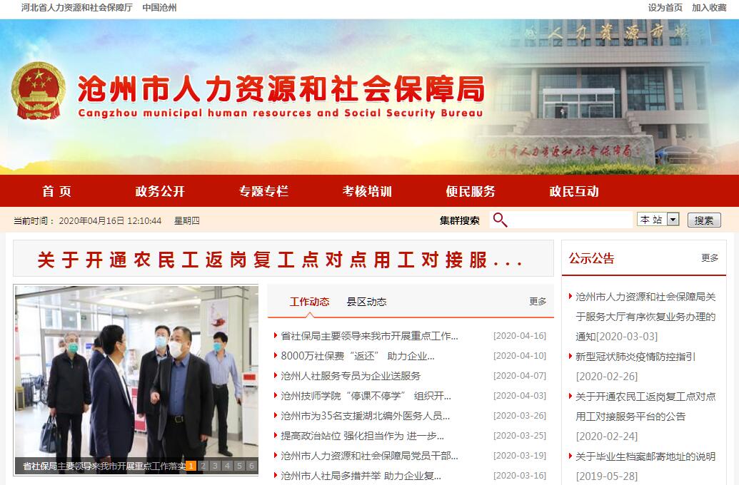 沧州市人力资源和社会保障局,为市政府工作部门。其主要职责是:1、贯彻落实国家、省有关人力资源和社会保障的政策、规定,监督检查落实情况;拟订全市人力资源和社会保障事业发展规划及措施,负责全市人力资源和社会保障的宣传和舆情研究。2、拟订人力资源市场发展规划和人力资源流动办法,建立统一规范的人力资源市场,促进人力资源合理流动、有效配置;拟订机构改革人员定岗和分流措施并组织实施。3、负责促进就业工作,拟订统筹城乡的就业发展规划和管理办法,完善公共就业服务体系;拟订就业援助制度,完善职业资格制度,统筹建立面向城乡劳动者的职业培训制度;牵头拟订高校毕业生就业措施,负责中专以上毕业生的就业指导、服务工作。会同有关部门拟订高技能人才、农村实用人才培养和激励办法。4、统筹建立覆盖城乡的社会保障体系。执行城乡社会保险及其补充保险政策和标准,组织拟订全市统一的社会保险关系转续办法和基金统筹办法,统筹拟订机关企事业单位社会保险办法并逐步提高基金统筹层次。会同有关部门拟订社会保险及其补充保险基金管理和监督制度,编制全市社会保险基金预决算草案,参与制订全市社会保险基金投资办法。5、负责就业、失业、社会保险基金预测预警和信息引导,拟订应对预案,实施预防、调节和控制,保持就业形势稳定和社会保险基金总体收支平衡。6、会同有关部门拟订全市机关企事业单位人员工资收入分配实施办法,建立全市机关企事业单位人员工资正常增长和支付保障机制。执行机关企事业单位人员福利和离退休政策。7、会同有关部门拟订全市人才工作总体目标,参与人才管理。会同有关部门指导全市事业单位人事制度改革,拟订全市事业单位人员和机关工勤人员管理办法。负责全市人事考试工作。制订全市专业技术人员管理和继续教育办法,综合管理全市职称工作;负责高层次专业技术人才选拔和培养,拟订引进国(境)外专家、留学人员来沧(回国)工作或定居政策性措施。8、会同有关部门拟订军队转业干部安置办法和安置计划,负责军队转业干部培训工作。负责提出部分企业军队转业干部解困和稳定对策,负责自主择业军队转业干部的管理服务。9、负责行政机关公务员综合管理,拟订人员调配管理办法和特殊人员安置办法。10、会同有关部门落实农民工工作的综合性政策和规定,协调解决重点难点问题,维护农民工合法权益。11、贯彻执行劳动、人事争议调解仲裁制度和劳动关系政策,完善劳动关系协调机制;执行消除非法使用童工政策和女工、未成年工的特殊劳动保护政策,组织实施劳动监察,协调劳动者维权工作,依法查处重大案件。12、承办市政府交办的其他事项。