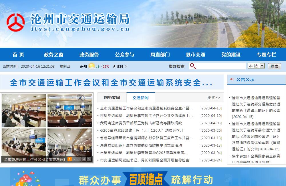 沧州市交通运输局主要职责:一、会同有关部门推进全市综合交通运输体系建设,统筹规划公路、水路、地方铁路、民航行业发展,建立健全与全市综合交通运输体系相适应的制度体制机制,优化市内交通运输主要通道和重要枢纽节点布局,促进各种交通运输方式融合。二、会同有关部门编制全市综合交通运输体系规划,监督实施公路、地方铁路、民航发展战略、政策和规划,统筹综合交通运输枢纽规划和管理。监督实施物流业发展政策和标准,统筹协调邮政规划与综合交通运输规划的衔接。三、贯彻落实地方性综合交通运输以及公路、地方铁路、民航相关法规和规章。监督实施交通运输综合行政执法政策标准,负责重大案件查处和跨区域执法的组织协调工作。指导全市交通运输综合行政执法和队伍建设有关工作。指导全市交通运输行业体制改革工作。四、负责执行综合交通运输标准,监督实施公路、地方铁路等行业标准,协调衔接各种交通运输方式标准。五、承担全市道路、地方铁路运输市场监管责任。监督实施道路、地方铁路运输有关政策、准入退出制度、技术标准和运营规范。指导城乡客运及有关设施规划和管理,指导城市客运工作。六、负责全市地方铁路行业管理工作。牵头负责铁路沿线环境安全监管职责。七、承担管辖水域水上交通安全监管责任。负责水上交通管制、防止污染等工作。负责船舶及相关水上设施检验、登记和监督管理。依法组织或参与事故调查处理。指导地方海事和船员管理有关事宜。八、负责提出全市公路、地方铁路和民航运输行业固定资产投资规模和方向、市财政性资金安排意见。组织上报规划内和年度计划规模内的固定资产投资项目。负责公路、地方铁路和民航交通国有资产管理和交通专项资金的管理、使用。指导行业内部审计工作。承担公路、地方铁路和民航运输行业财政预算资金的绩效监督和管理工作。代表市政府履行公路、地方铁路和民航运输类企业出资人职责。九、承担全市公路、地方铁路建设市场监管责任。监督执行公路、地方铁路建设相关政策、制度和技术标准。组织协调公路、地方铁路等有关重点工程建设、工程质量和安全生产监督管理工作,指导公路、地方铁路交通运输基础设施管理和维护。负责全市公路、地方铁路交通基本建设项目招投标活动的监督管理。负责全市收费公路管理。十、负责全市民航行业发展建设和管理的组织协调。十一、指导全市公路、地方铁路行业安全生产和应急管理。按规定组织协调国家、省、市重点物资和紧急客货运输。负责市管高速公路及国、省重点干线公路网运行监测和应急处置协调工作。负责国防交通有关工作。十二、会同有关部门推进全市交通运输信息化建设。承担公路、地方铁路、民航运输统计工作,监测分析公路、地方铁路、民航运输运行情况,发布有关信息。指导公路、地方铁路行业环境保护和节能减排。十三、监督实施全市公路、地方铁路、民航运输行业科技政策、技术标准和规范,组织科技开发,推动行业技术进步。指导行业教育培训工作。指导行业精神文明建设。十四、负责全市公路、地方铁路、民航运输行业涉外事宜,开展与国际和港澳台地区公路、地方铁路、民航运输经济技术合作与交流。十五、负责京津冀协同发展交通一体化组织协调工作。十六、完成市委、市政府交办的其他任务。