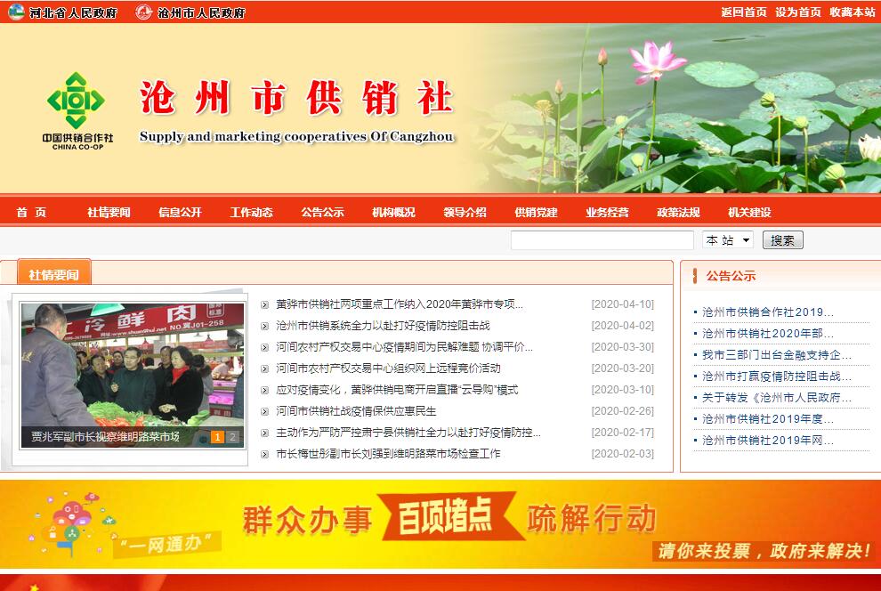 沧州市供销社辖14个县、市供销社,157个基层供销社,110个县以上直属企业,其中市直单位24个,共有干部职工1.8万人,其中市直3000人,市社机关设有办公室、合作指导科、综合业务科、组织人事科、财务审计科、老干部科6个科室。全系统拥有资产总额31.8亿元,其中固定资产10.2亿元。2017年全系统完成商品购进总额129.52亿元,商品销售总额131.71亿元,实现利润8250万元,上交税金7995万元。全市供销社紧紧围绕为“三农”服务的办社宗旨,高举为“三农”服务的旗帜,以办成真正的农民合作经济组织为根本方向,以改革为动力,以市场为导向,以网络建设为主线,以开展农资供应、工业品下乡和农产品购销为重点,积极运用现代流通方式,整合资源,努力打造市、县、乡、村城乡一体的社会化服务体系。目前,全市供销社共有市、县两级农资公司16个,农资供应网点2565个,日用消费品供应网点3182个,绿色回收网点350个,农副产品经营网点450个,农产品协会17个,各种类型的专业合作社1726个,农副产品龙头企业8个,农产品市场2个。经过近年来实施“新网工程”建设,全市供销社系统已基本形成了市县乡村四级农资供应服务网络;以大中型商场为龙头,以超市便利店、村级综合服务站为终端的工业品供应网络,以及农产品购销网络,为我市农村商品流通和农村经济的发展做出了积极贡献。
