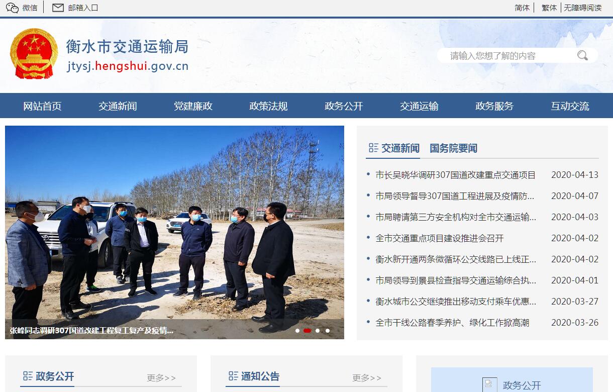 衡水市交通运输局主要职责:(一)承担全市综合运输体系的规划协调,会同有关部门组织编制全市综合运输体系规划,参与交通运输枢纽规划和管理。(二)组织拟订并监督实施全市公路、水路等行业规划和政策;参与拟订物流发展规划和有关政策并监督实施;指导公路、水路行业体制改革。(三)承担全市公路、水路运输市场监管责任;组织制订公路、水路运输有关政策并监督实施;指导道路运输行业管理;负责从事危险货物公路和水路运输人员资质认可;指导城乡客运及有关设施的规划与管理;指导出租车行业管理。(四)承担管辖水域内水上交通安全监管责任;指导地方海事管理和船员管理。(五)负责组织全市交通运输基础设施固定资产投资项目的提出、论证、申报和计划实施工作;负责交通国有资产管理和省、市交通专项资金的管理、使用;负责行业内部审计。(六)承担全市公路、水路建设市场监管责任;拟订公路、水路建设相关政策、制度并监督实施;组织公路及其设施的建设、养护和管理。负责公路、水路等有关重点工程建设、工程质量和安全生产的监管;负责全市交通基本建设项目招投标活动的监督管理;负责全市收费公路管理。(七)负责全市干线公路、水路安全生产和应急管理,指导全市地方公路安全生产和应急管理;组织协调国家、省、市 重点物资和紧急客货运输;负责市内干线重点公路运行监测和协调;承担国防交通战备工作;指导交通运输行业安全工作。(八)指导全市交通运输信息化建设,监测分析运行情况,开展相关统计,发布有关信息。指导公路、水路行业环境保护和节能减排。(九)负责监督全市交通运输行业科技政策落实,指导科技开发,推动行业技术进步;指导交通运输行业人员继续教育和职工培训;指导行业精神文明建设。(十)负责全市交通运输行业涉外事宜,指导利用外资。