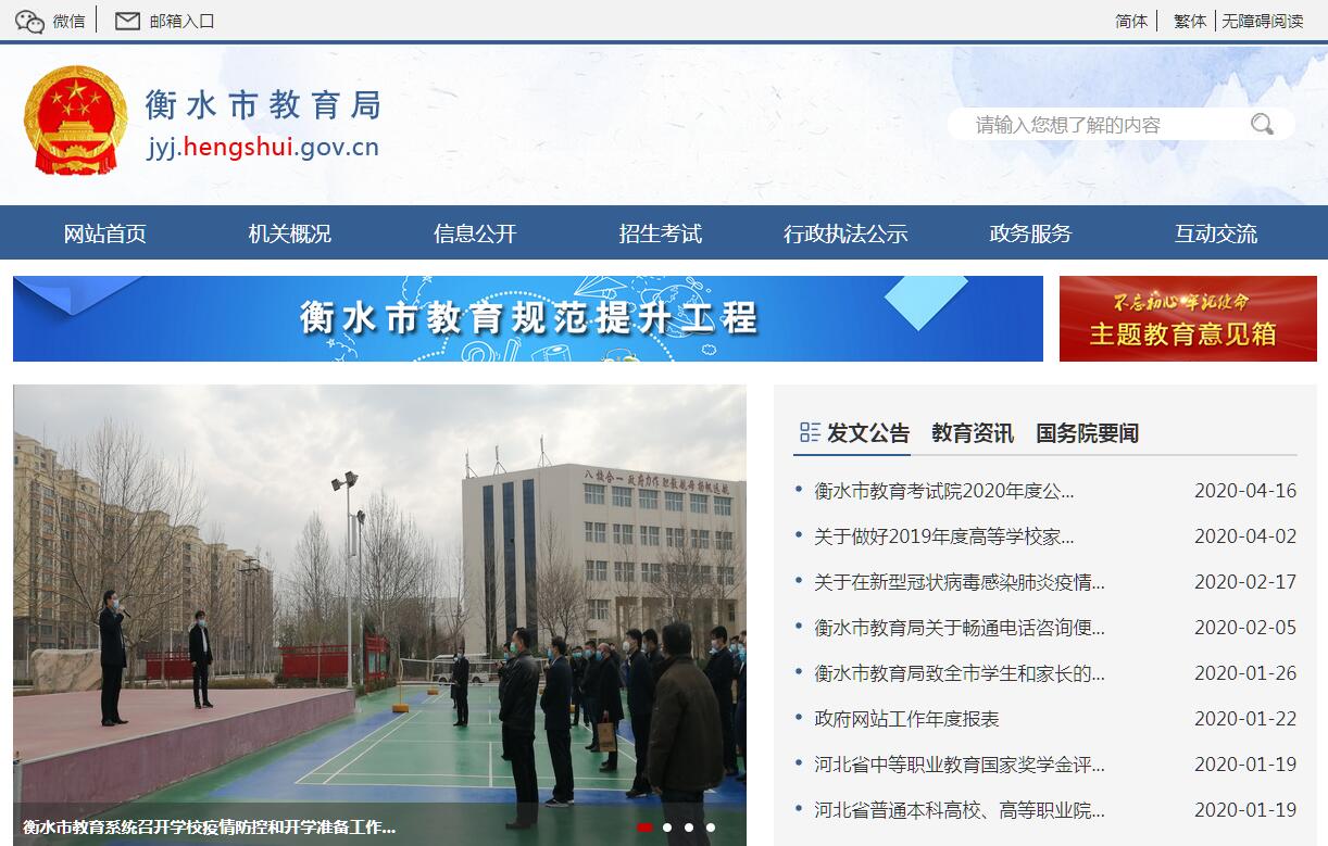 衡水市教育局是衡水市人民政府组成部门。其主要职责是:1.贯彻执行上级有关教育工作的法律、法规、方针和政策,拟订全市教育工作的方针、政策,起草有关教育方面的地方规范性文件。2. 拟订全市教育改革与发展战略和全市教育事业发展规划,并负责指导协调实施工作;负责各级各类公办民助、民办公助等改制学校的审核申报工作,负责社会力量举办的各级各类学校的管理工作。3. 统筹管理本部门教育经费及市拨教育经费;参与拟订筹措教育经费、教育拨款、教育基建投资有关政策;监测全市教育经费的筹措和使用情况;核算各级各类学校教育成本;提出高中段以下学校收费标准;按有关规定管理对本市的所有教育援助、教育贷款。4. 落实国家规定的中等和初等教育各类学校(包括幼儿园)办学标准、教学要求、教学基本文件和教材;指导中等及以下各级各类教育教学改革;组织实施普及九年义务教育、扫除青壮年文盲及其督导评估工作。5. 综合管理全市基础教育、职业教育、成人教育、普通高等教育和继续教育等工作;审核中等职业学校的设置、撤销、调整、合并和专业的设置、撤销、调整;审核普通高中和初中学校的设立、撤销、调整、合并、搬迁、更名,拟订教学基本文件,指导中等职业学校教育教学改革和中等职业教育评估工作。指导协调各县市区、各部门有关教育方面的工作,负责市直属学校建设、管理和协调工作。6. 参与拟订大中专院校毕业生就业政策;组织实施师范类大中专毕业生就业制度改革;办理师范类大中专毕业生就业报到工作;统筹规划全市教育系统人才队伍建设工作;主管全市教师工作;负责全市各级各类教师资格标准的组织实施;依法履行中等学校教师的资格认定、培养培训和考核等管理职能;按管理权限组织实施中小学教师专业技术职务评聘工作;负责市直属学校、直属单位的人员编制管理;研究提出教育系统劳动工资、人事管理有关政策建议;统筹规划和指导学校教师及管理人员队伍建设。7. 指导教育系统学校党建、思想政治、精神文明建设、宣传统战和维护稳定工作,规划指导全市各级各类学校思想政治、品德、体育卫生、艺术及国防教育工作。8. 统筹管理全市各类高等、中等学历教育的招生考试工作;根据上级主管部门的规定,拟订市属中等教育学校、高中段学校招生政策、招生计划;负责高中段学生学籍管理及招生备案、毕业证验印工作。9. 统筹规划、协调指导现代远程教育和现代教育技术工作;负责教育教学科学研究工作。10. 负责协调本市的对外教育交流工作。11. 规划、指导并推动教育系统的自然科学研究,发展高新技术及科研成果转化工作。12. 负责教育基本信息的统计、分析和发布。13. 拟订全市语言文字工作的政策、规定,编制语言文字工作中长期规划;组织实施并监督检查汉语语言文字规范、标准的实施;组织指导推广普通话和普通话测试工作。14. 贯彻执行国家教育督导工作条例,对国家有关教育工作的方针政策法律法规执行情况进行监督、检查;对县、乡两级政府及有关职能部门教育和有关工作的管理情况进行督导评估。15. 负责教育工委系统学校干部队伍建设,协助市委做好市直属县级学校校级干部管理、考核、考察、任免、调整工作;负责市直属学校中层干部的培训、科级干部的备案及管理工作;负责市直属学校和直属单位中层干部队伍建设、校级后备干部队伍建设,指导教育工委系统学校工会、共青团、妇女及计划生育工作。16. 指导学校内部管理体制和教育教学改革。17. 承办市委、市政府、省教育工委交办的其他事项。