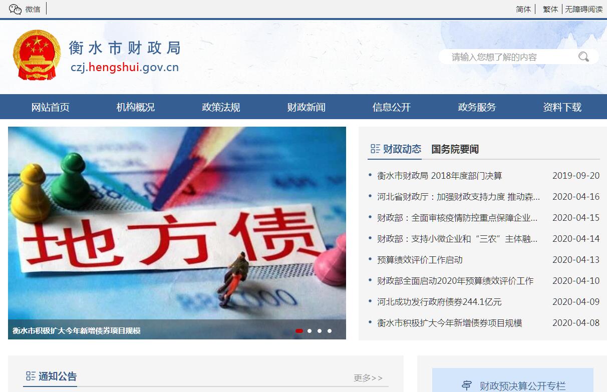 衡水市财政局,为市政府工作部门。其主要职责是:(一)、贯彻落实国务院、省政府及市政府推进简政放权放管结合职能转变工作要求,坚持简政放权、放管结合、优化服务。推进行政审批制度改革工作,严格落实行政权力清单、责任清单和监管清单制度,强化事中、事后监管。(二)贯彻执行国家财政、税收的发展战略、方针、政策;根据全市国民经济和社会发展规划,拟定财税发展战略、规划、政策和改革方案并组织实施;分析预测宏观经济形势,参与制定各项宏观经济政策,提出运用财税政策实施宏观调控和综合平衡社会财力的建议;拟定市县、国家与地方企业的分配政策,完善鼓励公益事业发展的财税政策。(三)贯彻执行国家财政、税收、国有资本金基础管理、财务、会计管理的各项法律法规;起草财政、预算、财务、会计管理等政策并监督实施。(四)承担财政预算管理的责任。负责编制年度市本级预算草案并组织执行,汇编全市年度预决算草案;受市政府委托,向市人民代表大会报告全市及市本级预算及其执行情况,向市人大常委会报告决算;组织制定经费开支标准、定额,负责审核批复部门(单位)的年度预决算。(五)承担财政体制管理的责任。负责拟订市以下财政管理体制,研究提出县以下财政管理体制指导性意见,完善地方转移支付制度;负责承接上级财政部门下放的适合地方管理的专项转移支付具体项目审批和资金分配工作。(六)承担财政国库管理的责任。负责制定国库管理制度、国库集中收付制度并组织实施,指导和监督市本级国库业务,按规定开展国库现金管理。(七)负责政府非税收入和政府性基金管理,按规定管理行政事业性收费;管理财政票据。(八)、负责财税法律法规的贯彻实施;承担机关有关文件的合法性审核;承担有关行政复议等工作。(九)负责制定行政事业单位国有资产管理规章制度,以及市直行政事业单位的国有资产监督管理;制定需要全市统一规定的开支标准和支出政策;承担市直机关事业单位公务车辆编制管理职责。(十)负责审核和汇总编制全市国有资本经营预决算草案,制定国有资本经营预算的制度和办法,收取市本级企业国有资本收益;制定并组织实施企业财务制度;按规定管理地方金融类企业国有资产;负责对城市商业银行的财务管理。(十一)负责办理和监督市级财政的经济社会发展支出、市投资项目的财政拨款,参与拟订市建设投资的有关政策,制定基本建设财务制度;负责有关政策性补贴和专项储备资金财政管理。(十二)会同有关部门管理市级财政社会保障和就业及医疗卫生支出,会同有关部门拟定社会保障资金(基金)的财务管理制度,编制市级社会保障预决算草案。(十三)负责管理市政府的国内外债权、债务。执行国家外债管理的政策,拟定具体实施办法,承担外国政府贷款、国际金融组织贷款的对外谈判与磋商;负责财政预算内行政机构、事业单位和社会团体的非贸易外汇管理;受市政府委托会同有关部门处理涉及财政、债务等方面的涉外事务。(十四)负责管理全市会计工作,监督和规范会计行为,组织实施国家统一的会计制度。(十五)监督检查财税法规、政策的执行情况,反映财政收支管理中的重大问题;制订全市财政监督的政策。(十六)负责制定政府采购制度并监督实施。(十七)负责全市农业开发资金的拨付、检查和监督管理工作。(十八)贯彻落实国家和省有关国有资产管理的法律法规,起草国有资产管理的地方性、政府规章草案,制定有关制度和办法,对口省国资委指导推进市属企业国有资产监督管理工作。依法对县属国有资产管理工作进行指导和监督;(十九)研究提出全市国有企业改革政策建议,指导推进全市国有企业的改革和重组,推进国有经济布局和结构的战略性调整,推动国有资本更多地投向关系国家安全和国民经济命脉的重要行业和关键领域。(二十)贯彻执行国家有关国有产权管理的法律法规,负责全市企业国有资产产权登记管理工作;综合研究全市国有经济和国有企业运行状况,建立和完善市属国有企业统计分析工作体系。(二十一)制定财政教育培训规划;组织财政人员培训;做好财政信息和财政宣传工作。(二十二)承办市政府交办的其他事项。