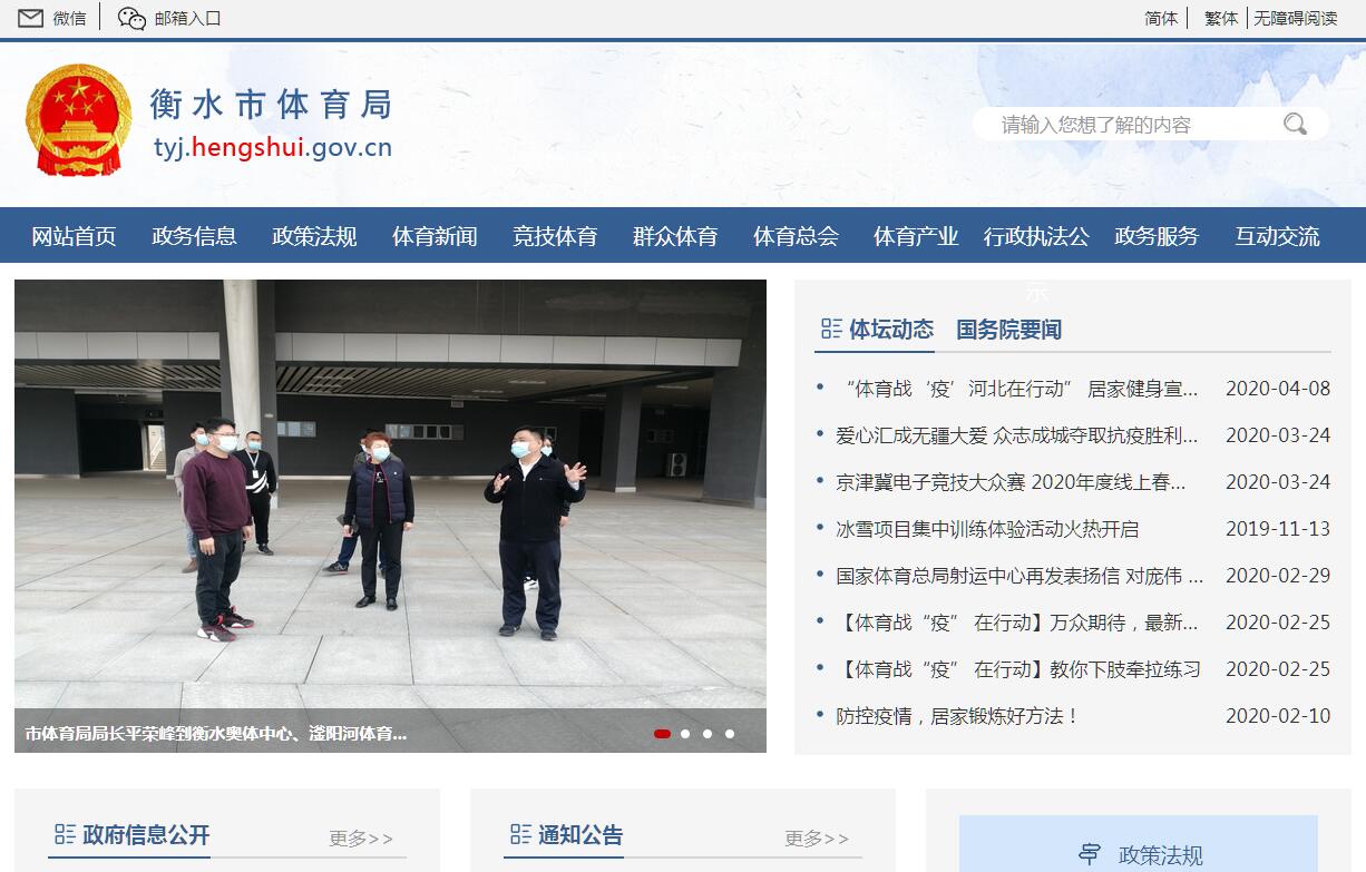 衡水市体育局主要职责:一、贯彻执行国家有关体育工作的方针、政策和法规;根据市人民政府委托起草有关的规范性文件草案;指导和推动全市体育改革;拟订全市体育事业的中长期发展规划和年度计划并组织实施;指导协调全市体育事业发展;对国家所公布的体育项目进行行业管理。二、指导全市体育行业管理和体育工作;推动全民健身计划,指导并推动群众体育活动,指导实施《全民健身计划纲要》,开展国民体质监测;指导和协调各系统、各部门做好学校体育、农村体育、城市体育、少数民族体育及残疾人体育工作。三、统筹规划竞技体育发展,加强对竞技体育宏观指导和管理,研究和平衡全市性体育竞赛、竞技运动项目设置;实施对体育项目的行业管理,制订训练竞赛体制改革措施;负责在我市承办的国际、国内大型比赛及参加全省以上综合性运动会的组队管理及统筹安排;组织开展反兴奋剂工作。四、研究和平衡全市业余训练项目的设置;指导各级业余体校的建设和业余训练工作,组织开展对各级体育学校及体育传统项目学校的评估。五、研究拟定体育产业发展规划;负责体育经营活动从业条件核准;依照国家有关法规和《河北省体育市场管理条例》规范管理、培育和发展体育市场。六、开展国际、国内的体育合作与交流;管理和指导体育系统及民间体育外事工作。七、负责全市性体育社团的资格审查和业务管理。八、组织体育领域重大科技研究成果的推广。九、承办市政府交办和省体育局的其他事项。