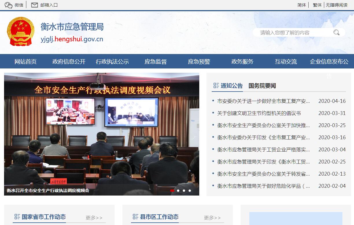 衡水市应急管理局的主要职责是:(一)负责应急管理工作,指导各级各部门应对安全生产类、自然灾害类等突发事件和综合防灾减灾救灾工作。负责安全生产综合监督管理和工矿商贸行业安全生产监督管理工作。(二)拟订应急管理、安全生产等政策规定,组织编制市应急体系建设、安全生产和综合防灾减灾规划,起草政府规范性文件,组织制定相关规程和标准并监督实施。(三)指导应急预案体系建设,建立完善事故灾难和自然灾害分级应对制度,组织编制市总体应急预案和安全生产类、自然灾害类专项预案,综合协调应急预案衔接工作,组织开展预案演练,推动应急避难设施建设。(四)牵头建立统一的全市应急管理信息系统,负责信息传输渠道的规划和布局,建立监测预警和灾情报告制度,健全自然灾害信息资源获取和共享机制,依法统一发布灾情。(五)组织指导协调安全生产类、自然灾害类等突发事件应急救援,承担市应对重大灾害指挥部工作,综合研判突发事件发展态势并提出应对建议,协助市委、市政府指定的负责同志组织重大灾害应急处置工作。(六)统一协调指挥各类应急专业队伍,建立应急协调联动机制,推进指挥平台对接,衔接解放军和武警部队参与应急救援工作。(七)统筹应急救援力量建设,负责消防、森林和草原火灾扑救、抗洪抢险、地震和地质灾害救援、生产安全事故救援等专业应急救援力量建设,管理市综合性应急救援队伍,指导各级及社会应急救援力量建设。(八)组织协调消防工作,指导各级消防监督、火灾预防、火灾扑救等工作。(九)指导协调森林和草原火灾、水旱灾害、地震和地质灾害等防治工作,负责自然灾害综合监测预警工作,指导开展自然灾害综合风险评估工作。(十)组织协调灾害救助工作,组织指导灾情核查、损失评估、救灾捐赠工作,管理、分配市救灾款物并监督使用。(十一)依法行使市安全生产综合监督管理职权,指导协调、监督检查市有关部门和各县(市、区)政府安全生产工作,组织开展安全生产巡查、考核工作。(十二)按照分级、属地原则,依法监督检查工矿商贸生产经营单位贯彻执行安全生产法律法规情况,及其安全生产条件和有关设备(特种设备除外)、材料、劳动防护用品的安全生产管理工作。负责监督管理工矿商贸行业市属企业、驻衡省属企业和驻衡中央企业的安全生产工作。依法组织并指导监督实施安全生产准入制度。负责危险化学品安全监督管理综合工作和烟花爆竹安全生产监督管理工作。(十三)依法组织指导生产安全事故调查处理,监督事故查处和责任追究落实情况。组织开展自然灾害类突发事件的调查评估工作。(十四)制定应急物资储备和应急救援装备规划并组织实施,会同市发展和改革委员会(市粮食和物资储备局)等部门建立健全应急物资信息平台和调拨制度,在救灾时统一调度。(十五)负责应急管理、安全生产宣传教育和培训工作,组织指导应急管理、安全生产的科学技术研究、推广应用和信息化建设工作。(十六)负责组织指导协调和监督全市安全生产行政执法工作,组织开展对市属企业、驻衡省属企业和驻衡中央企业的执法检查,组织开展对安全生产重点企业的执法检查。(十七)依照国家、省有关法律、法规的规定,监督、检查全市的防震减灾工作及防震减灾法律法规落实执行情况;负责编制辖区内防震减灾规划计划;负责地震行政执法工作;负责监督建设工程的抗震设防要求和地震安全性评价工作。承担地震宣传、工程地震、地震监测、预报等职能;组织协调地震应急救援工作,推动避难设施建设,指导协调地质灾害防治相关工作,组织重大地质灾害应急救援。(十八)组织开展应急管理方面的交流与合作。(十九)完成市委、市政府交办的其他任务。