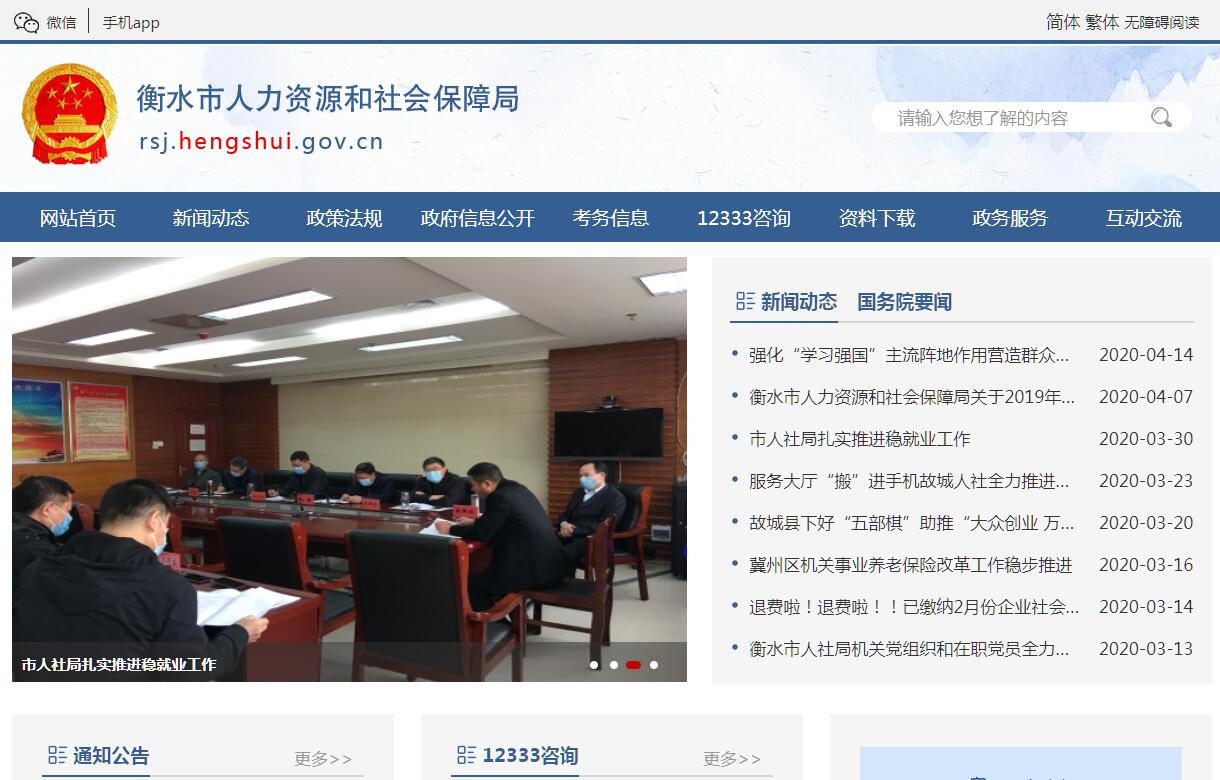 衡水市人力资源和社会保障局的主要职责是:(一)贯彻落实国务院、省政府及市政府推进简政放权放管结合职能转变工作要求,坚持简政放权、放管结合、优化服务。推进行政审批制度改革工作,严格落实行政权力清单、责任清单和监管清单制度,强化事中事后监管。(二)拟订全市人力资源和社会保障事业发展规划、政策,负责全市人力资源和社会保障宣传和舆情研究。(三)拟订全市人力资源市场发展规划,完善人力资源流动政策,建立统一规范的人力资源市场,加强人才智力引进,促进人力资源合理流动和有效配置,拟订机构改革人员定岗和分流政策。(四)负责促进就业工作。拟订统筹城乡的就业发展规划,完善相关政策,健全公共就业服务体系,拟订就业援助制度,完善职业资格制度,统筹建立面向城乡劳动者的职业培训制度,牵头拟订高校毕业生就业政策,按规定负责中专以上毕业生的就业指导工作。会同有关部门拟订高技能人才、农村实用人才培养和激励政策。(五)统筹建立覆盖城乡的社会保障体系。统筹做好城乡社会保险及其补充保险工作,贯彻落实国家、省有关城乡社会保险及其补充保险的政策、标准和社会保险关系转续办法、基金统筹办法等,贯彻落实机关企事业单位社会保险政策,做好相关政策、标准的补充和完善,逐步提高基金统筹层次、扩大覆盖范围、提高保障水平,实现“五险”统征。会同有关部门拟订社会保险及其补充保险基金管理和监督制度,编制全市社会保险基金预决算草案,参与拟订全市社会保险基金投资决策。(六)负责全市就业、失业、社会保险基金预测预警和信息引导,拟订应对预案,实施预防、调节和控制,保持就业形势稳定和社会保险基金总体收支平衡。(七)完善并贯彻落实机关企事业单位人员工资收入分配政策,建立全市机关企事业单位人员工资正常增长和支付保障机制;完善并贯彻落实机关企事业单位人员福利和离退休政策,并负责监督检查。(八)会同有关部门拟订人才工作总体目标,参与人才管理。会同有关部门指导全市事业单位人事制度改革,拟订全市事业单位人员和机关工勤人员管理政策。负责全市人事考试工作。制定全市专业技术人员管理和继续教育政策,综合管理全市职称工作,健全博士后管理制度,负责高层次专业技术人才选拔和培养,拟订引进国(境)外专家、留学人员来衡(回国)工作或定居政策。(九)完善并贯彻落实军队转业干部安置政策,会同有关部门拟订军队转业干部安置计划,负责军队转业干部培训;组织落实部分企业军队转业干部解困和稳定政策;负责自主择业军队转业干部的管理服务。(十)负责行政机关公务员综合管理,完善并落实人员调配政策和特殊人员安置政策。(十一)会同有关部门拟订农民工工作规划、完善并推动农民工相关政策的落实,协调解决重点难点问题,维护农民工合法权益。(十二)完善并贯彻落实劳动人事争议调解仲裁制度和劳动关系政策,完善劳动关系协调机制, 落实消除非法使用童工和女工、未成年工特殊劳动保护政策,组织实施劳动监察,统筹管理劳动人事争议调解仲裁工作,协调劳动者维权工作,依法查处违法案件。(十三)承办政府系统事业单位科级职务任免有关事宜,统一管理市政府系统科级干部人事档案。综合管理政府系统事业单位的奖励、表彰工作。(十四)会同有关部门贯彻落实公务员分类、录用、考核、奖惩、任免、培训、辞退等方面的地方性法规和规章,拟订事业单位工作人员参照公务员法管理办法并组织实施,负责聘任制公务员管理工作。(十五)贯彻落实公务员行为规范、职业道德建设和能力建设政策;拟订公务员职位分类标准和管理办法,依法对公务员实施监督;负责公务员信息统计管理工作。(十六)完善公务员考试录用制度,负责组织全市机关公务员、参照公务员法管理事业单位工作人员的考试录用工作。(十七)完善公务员考核制度,负责全市行政机关公务员考核工作。拟订公务员培训和在职教育政策、规划、计划和标准,负责组织机关公务员培训工作。(十八)承办市政府提请市人大常委会决定任免人员和市政府任免人员的行政任免手续等有关事宜;负责市政府各部门科级公务员的考察、选拔、任免等工作。(十九)综合管理政府奖励、表彰工作;会同有关部门研究拟订政府表彰奖励办法并组织实施;审核上报国家、省及相关部门表彰奖励人选;指导协调以市政府名义实施的表彰奖励工作,审核以市政府名义实施的表彰奖励活动和以市政府名义 表彰奖励的人选。(二十)完善公务员申诉控告制度和聘任制公务员人事争议仲裁制度,保障公务员合法权益。(二十一)承办市政府交办的其他事项。
