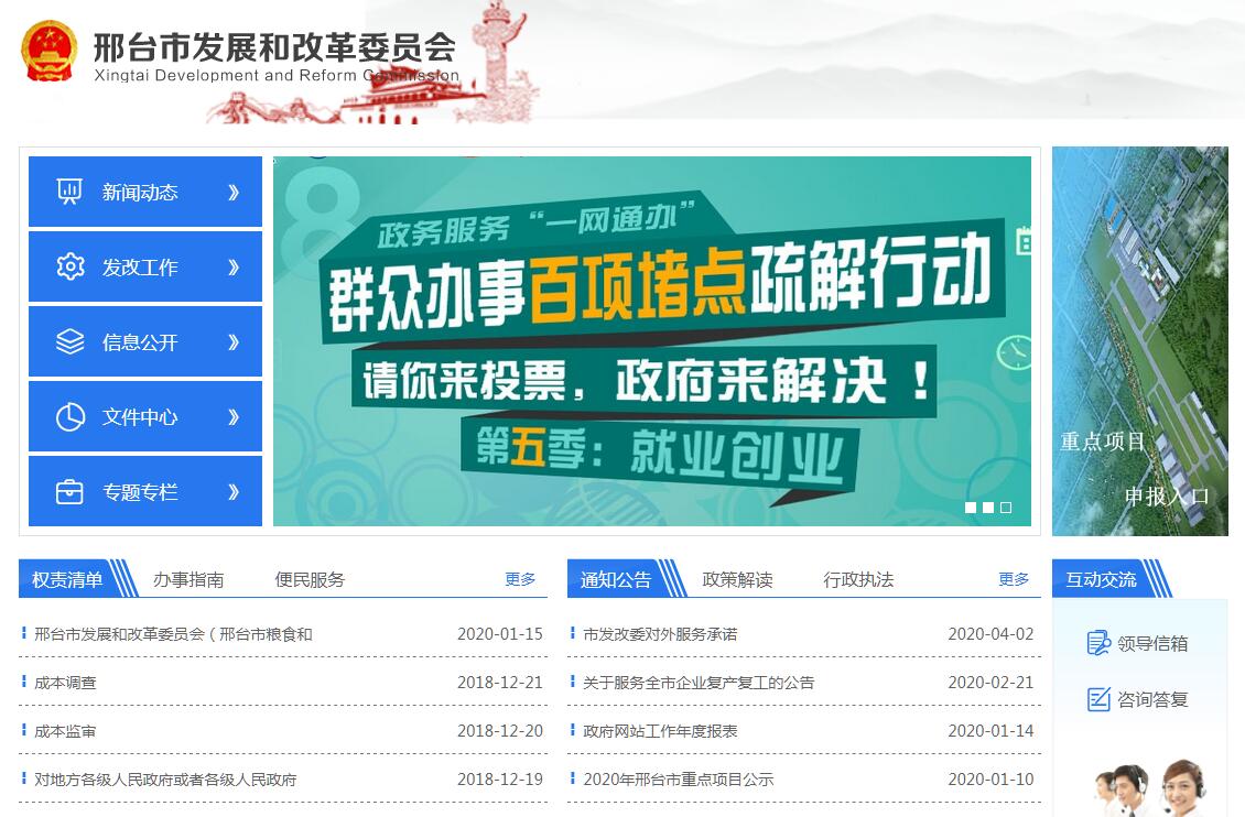 邢台市发展和改革委员会是市政府的综合经济和投资主管部门。其主要职能是:按照国家产业政策和节能减排要求,管理全市固定资产投资,审批、核准、备案市级权限的各类建设项目,向上申报并帮助企业和项目单位跑办省级以上审批权限项目的前期手续。围绕国债及国家和省预算内资金投向,编制有关项目规划,筛选申报拟利用上级资金项目,积极争取上级资金支持;监督管理市内利用国债及预算内资金项目的资金使用和项目建设。按照推进产业升级、加快结构调整、促进发展方式转变的要求,提出市财政性资金的规模和投向,安排市财政性资金支持项目并监督管理资金使用和项目实施。按照国家和省要求,筛选并向上申报国家和省级重点建设项目;研究提出市级重点建设项目门槛,安排并协调推进市级重点建设项目。落实国家和省有关政策,为企业办理和帮助企业办理退税、免税以及生产许可认证。负责煤炭、石油、天然气、电力、新能源和可再生能源等能源的行业管理;组织实施能源行业技术法规和标准;指导协调农村能源发展工作。拟订并组织实施全市国民经济和社会发展战略、中长期规划和年度计划。组织事关经济社会发展全局的重大问题研究,分析国内外、市内外经济形势,研究全市经济运行,进行国民经济监测、预测和预警,提出运用各种经济手段促进经济社会又好又快发展的政策建议。研究全市经济体制改革和对外开放的重大问题,组织拟订综合性经济体制改革方案,协调有关专项经济体制改革方案。