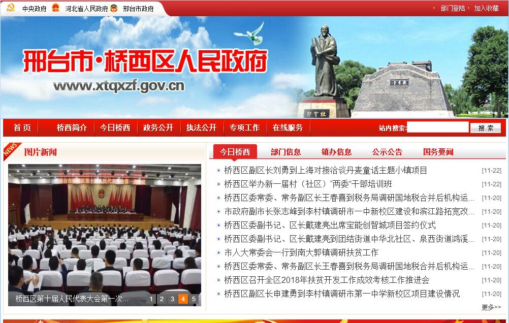 桥西区于1980年建区,是邢台市三个市辖区之一,地处河北省南部,西倚太行山,东以京广铁路为界与桥东区相邻,总面积149平方公里,辖2个镇、8个街道办事处,共有33个行政村,79个社区居委会,总人口45万人。近年来,桥西区委、区政府立足新起点,着眼新跨越,培树新形象,突出抓好“经济发展、城市建设、环境保护、民生事业、社会稳定”五项基本工作,积极推进外向带动战略,构筑全方位、多层次、宽领域的大开放、大流通、大发展区域经济新格局,经济社会保持了平稳较快的发展态势。2015年,全区生产总值完成131.34亿元。辖区固定资产投资完成132.68亿元,同比增长14.7%。社会消费品零售总额完成84.56亿元,同比增长8.7%。全部财政收入实现23.9亿元(剔除冀中股份完成19.8亿元,同比增长5.2%),地方公共财政预算收入完成13.72亿元(剔除冀中股份,完成12.8亿元,同比增长6.6%)。城镇居民人均可支配收入达到28009元,同比增长9.1%。三次产业比由2014年的0.72:45.68:53.6调整优化为0.79:39.38:59.83。其主要特点如下:一是人文底蕴深厚。桥西有3500多年的文明史,是“殷商之源、祖乙之都、邢侯之国”。历史上曾四次建国,三次定都。新石器遗址、殷商遗址及三大古墓群等文物遍布区内。这里人杰地灵,人才辈出,唐代宋璟、元代刘秉忠被称为救世名相,元代科学巨匠郭守敬从这里走向世界。二是交通顺畅便捷。京广铁路、邯黄铁路、邢汾高速从境内穿插而过,107国道纵贯南北。距石家庄机场130公里,距邢台民航机场仅25公里,到北京乘坐高铁仅需1个半小时。辖区内路网密集,四通八达。随着全市城市建设的不断深入推进,桥西正在全面拉大路网框架,加快基础设施建设步伐,为进一步承接京津发达地区产业梯度转移和商贸物流业发展,提供了非常便利的交通条件。三是规模企业众多。全国综合实力500强企业——冀中能源集团、邢台钢铁有限公司,全国最大的冶金轧辊企业——中钢邢机股份有限公司,华北最大的火力发电厂——兴泰发电有限公司等省部属企业及河北中铜新能源锂电池、特瑞堡轮胎等知名企业坐落在桥西,为经济社会的发展提供了强劲动力和有力支撑。四是服务业繁荣活跃。随着人流、物流、信息流、资金流大量汇集,中北世纪城、北国商城、大洋百货、凰家购物广场、居然之家、红星美凯龙等多个大型综合体和商业卖场集聚我区,形成了以中兴大街为轴心的中央商贸经济圈。同时,辖区北部汽车物流园区发展迅速,已建成17家汽车4s店,涵盖国内、国外多个品牌,形成了全市最大的汽车交易销售中心。五是发展前景广阔。桥西拥有市区50%的建成区,70%的发展备用地,有4万亩荒滩、荒岗、荒坡等未利用地,土地价格不到南方沿海地区的三分之一。辖区劳动力充裕且成本较低,一般工人平均工资仅为发达地区的四分之一。为积极打造新的经济增长极,桥西正在着力推进龙岗综合物流产业聚集区、生态文化园区和襄湖岛现代农业园区。2013年获批的省级龙岗物流聚集区正在以冀南物流中心、再生二手车循环产业园等项目为依托加快推进。生态文化园区已具备完善的项目发展条件,中国动力新能源汽车产业园、北京永林太行国风庄园、省外贸跨境电商科技园等一批优质项目初步选址。襄湖岛农业园区范围的薰衣草庄园、华阳湖生态观光园等一批现代农业项目加速扩张,与光明食品集团上海公司正在对接,加快发展“第六产业”。同时,作为未来全市重点开发建设的龙岗片区正在与东胜集团共同开发,全力打造高品质、高水准的未来新城。六是科教资源丰富。辖区大中专院校云集,学术研究氛围浓厚,尤其是职业技术教育发展迅猛,集聚了邢台职业技术学院、河北机电职业技术学院、邢台技师学院等十余所大中专院校,数十所职业培训教育机构,在培养高技能、高素质人才方面极具特色和实力。邢台市职教园区每年为社会输出12000余名各类专业技术人才。七是环境优美宜人。作为邢台市主城区之一,2015年辖区绿化覆盖率、绿地率分别达39.33%和34.96%,为全市之首。河北省最大的市内公园——占地千亩的达活泉公园坐落于桥西;辖区西南部的襄湖岛湿地公园,拥有水域面积3000亩,林地15000亩,鸟类众多,林木繁茂、幽然宁静,已列为全市经典旅游线路。同时,随着南部的“七里河”和西部的“南水北调”工程的持续改造提升,桥西必将成为更加和谐、更加优美、更富人气的宜居之区。