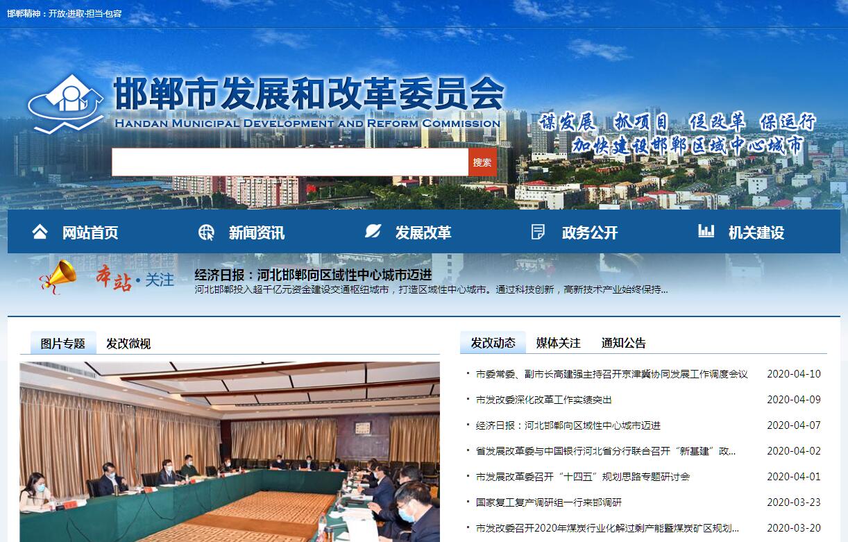 邯郸市发展和改革委员会是2004年1月,由原市计委及经贸委、体改办、开放办以及市轻工、机械电子、纺织、冶金建材、医药化学、煤炭等6个工业办公室,共10个单位整合而成。2010年机构改革将发改委工业行业管理职能及国防工办、禁化武办划入工信局,同时,市物价局归属发改委管理。根据省政府关于发改委要当好经济社会发展的参谋部、规划部、协调部的职能总定位,市三定方案确定发改委共19项职能,主要包括经济发展规划、重点项目审批和管理、经济运行调节、投资管理、体制改革、节能降耗、经济合作、行业管理等8个方面。发改委的基本职能概括为“谋发展、抓项目、促改革、保运行”。工作的主要特点可概括为“两强两重”:综合性强,工作面非常宽,既抓发展,又抓改革,还抓开放;既抓宏观谋划、长远规划,又抓具体落实和即期调节;既抓经济建设,又抓社会发展;既抓项目的前期谋划、手续跑办,又抓项目资金的争取,还抓重点项目的推进、稽查和验收。政策性强,作为具体执行国家产业政策的部门,业务工作的专业性很强。协调任务重,大量工作需要和其它部门协调推进,处室设置基本上与政府部门相对应,如农经处对口农、林、水部门,社会处对口文化、教育、体育、旅游、劳动等社会事业部门等等。带队伍任务重,就是发改委作为427名干部职工的大部门,内部管理、带队伍的任务非常重。