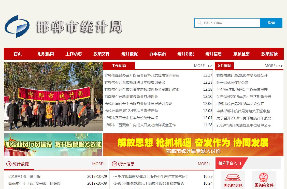 邯郸市统计局主要职责:一、承担组织领导和协调管理全市统计工作,确保统计数据真实、准确、及时的责任。二、依照国家和省有关法律、法规和制度,制订并实施全市统计工作规章制度、统计现代化建设规划、统计调查计划和统计调查标准、统计调查制度,监督检查统计法律、法规实施情况,指导全市统计工作。三、贯彻执行国家和省国民经济核算制度,组织实施全市及各县(市、区)国民经济核算制度和投入产出调查,核算全市及各县(市、区)地区生产总值,整理、测算和提供国民经济核算资料,监督管理全市国民经济核算工作。四、组织完成国家和省部属的国情国力普查及重要调查任务;研究提出重大市情市力普查和抽样调查计划并组织实施,汇总、整理和提供有关市情市力方面的统计数据。五、组织实施农林牧渔业、农业产值、农产品产量、农业产业化、工业、能源、社会、人口、工资、科技、消费、价格、城镇劳动力、城镇就业、建筑业、固定资产投资、房地产开发、高新技术产业、批发和零售业、住宿和餐饮业、运输邮电业、其他服务业、服务业个体户、对外经济和旅游、民营经济、成品油流通、城市社会经济基本情况、县(市)社会经济基本情况、乡村社会经济、资源环境、境外来中国大陆工作专家、服务业财务、规模以下工业、企业(集团)、城镇和农村住户、经济社会重点问题等统计调查,收集、汇总、整理和提供统计数据。六、组织实施社会发展水平、县域经济发展、节能降耗、城镇化发展、全面小康及农村小康建设进程、农村贫困、资源循环利用、妇女儿童等统计监测,收集、整理和提供统计数据。七、综合整理和提供财政、金融、个体、私营以及混合经济税收、出口、地质勘查、文化教育、卫生、社会保障、公用事业、房屋、对外贸易、对内经济技术合作及引进内资等基本统计数据。八、组织各县(市、区)、各部门的经济、社会、科技统计调查,统一核定、管理、公布全市性基本统计资料,定期发布全市国民经济和社会发展情况的统计信息,组织建立统计信息共享制度和发布制度。九、对国民经济、社会发展、科技进步等情况进行统计分析、统计预测和统计监督,向市委、市政府及有关部门提供统计信息和咨询建议。十、组织管理、审批(备案)各部门、各县(市、区)统计调查项目、调查计划、调查方案;组织管理全市统计登记工作;指导专业统计基础工作、统计基层业务和规范化建设;组织建立统计信息管理制度,建立健全统计数据质量审核、监控和评估制度,开展对重要统计数据的审核、监控和评估;依法监督管理涉外调查活动。十一、贯彻执行国家和省统计信息库和网络的基本标准和运行规则;管理全市统计信息自动化系统和统计数据库体系;管理全市统计数据库网络;指导全市统计信息化系统建设。十二、协助管理县(市、区)统计部门领导班子;指导县(市、区)地方调查队业务工作;指导全市统计专业技术队伍建设,配合国家和省统计局组织管理统计从业资格认定和持证上岗工作,协助有关部门组织管理统计专业技术资格考试、职务评聘工作;监督管理县(市、区)政府统计部门的中央统计经费和省、市财政提供的专项经费。十三、承办市政府交办的其他事项。