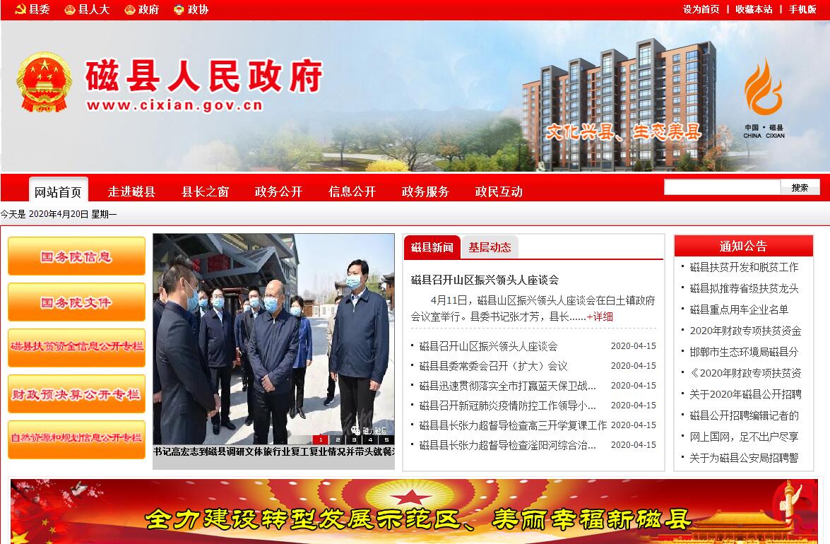 磁县位于河北省最南端,历史上曾因临滏水取名“临水县”,因地产磁石而得名“磁州”。磁县辖11个乡镇,258个行政村,地域面积695平方公里,总人口48万人。地势西高东低,西部山区、中部丘陵、东部平原。是中国磁州窑发祥地、全国重点产煤县、全国纺织产业集群试点县、中国童装加工名城、国家优质商品粮基地县、国家瘦肉型猪养殖基地、河北省莲藕之乡、河北省森林资源大县、河北省旅游资源大县、河北省文明县城和省园林城市。区位交通优势明显。磁县是河北省的南大门,西依太行,北靠古赵,东临邺城,南接殷墟,雄踞中原腹地,为晋、冀、鲁、豫四省通衢。京港澳、青兰、邯大3条高速和京广、邯济、邯长、邯黄、京广高铁5条铁路在县城周边交汇贯通,邯郸机场距县城17公里,是四省临界区唯一具有国道交汇、高速过境、铁路交叉、机场通航“四位一体”交通优势的县份。与石家庄、太原、济南、郑州四个省会城市的距离均在200公里左右,与北京、天津大都市的距离均在500公里以内,与黄骅港距离在370公里以内,具有20分钟上飞机、2小时入省会、3小时进京城、5小时到海港的便捷交通。历史文化积淀厚重。早在8000年前新石器时期就有先民在这里繁衍生息,战国时期属赵,三国魏黄初三年(222年)设临水县(今磁县城),迄今1700多年,隋开皇十年(590年)设慈州,北宋政和三年(1013年)改为磁州,民国二年(1913年)改为磁县。磁县是赵都、殷都、邺都“三都”文化交汇地,磁州窑文化、仰韶文化、殷商文化、赵文化、曹魏建安文化、北朝文化都留有丰厚遗存,有国家、省、市级文物保护单位145处,是河北省第二文物大县。磁县民间艺术源远流长,主要有民间花会和民间工艺两大类,民间花会有抬阁、背阁、彩帷、高低跷、讶鼓、旱船、竹马等40余种,民间工艺有剪纸、盆景、刺绣、面塑、印花布、绒画等20余种。磁县自古仁人志士辈出,涌现出了战国名相蔺相如、金朝文学家赵秉义、北齐名将高肃、明代兵部尚书张镜心、被陈赓将军誉为“越狱大王”的忠诚共产主义战士王维刚等众多历史名人。磁县还是革命老区,在邯郸党建史上有“九个第一”(第一个中国共产党党员、第一个共产党小组、第一个中共支部、第一个县委、第一个中共中心县委、第一个特委、第一次党的会议、第一个参加中共全国代表大会的代表、第一个抗日民主政府)。建国后,毛泽东、周恩来、胡锦涛等党和国家领导人曾亲临磁县视察工作。世界艺术奇葩—磁州窑。磁州窑,是中国民窑的杰出代表,国家重点文物保护单位。千年不息的磁州窑窑火创烧了“白地黑花”精品,形成了世界陶瓷史上的艺术奇葩—磁州窑,国家级非物质文化遗产。建成的中国磁州窑博物馆现有藏品14000余件,是我国县级较大的专题博物馆。即将开园的磁州窑文化创意产业园,是河北省十大文化精品园。胡汉民族大融合—北朝文化。磁县北朝墓群是北朝东魏、北齐时期的帝王及皇族的墓群,曾被认为是曹操墓的七十二疑冢。是全国重点文物保护单位,有134多座,出土器物丰富,历史、艺术和科学研究价值颇高,被国家文物局列入重点保护大遗址之列。正在建设的磁县北朝历史文化体验中心将展现胡汉民族交流大融合发展。矿产和水资源丰富。磁县境内已探明烟煤、主焦煤、石灰石、耐火粘土、陶土、红砂土、膨润土等矿产20多种。漳河、滏阳河二条河流穿境而过;岳城、东武仕两大水库蓄水15亿立方米左右,占邯郸市水面的90%,常年水质保持在二级以上,是邯郸市饮用水源地和生态水网工程水源地;南水北调中线工程在县城西2公里处穿过,全长19.8公里,境内设有一个分水口,是华北地区少有的富水县。农业生产条件优越。现有耕地41.4万亩,林地面积33.84万亩,2016年粮食总产量达20.3万吨,森林覆盖率达28.5%。近年来,引进建设了国家良种创制中心、牡丹杜仲产业园、漳禾矮化梨、八里冢无公害蔬菜种植基地等现代农业项目,农业产业化龙头企业19家、省级1家,农业产业化经营率达66.9%。旅游活县潜力巨大。磁县山川秀美,太行山层峦叠嶂,漳滏两河渊源流长。官路荷风、滏桥秋月、炉峰朝霭、贺兰积雪、台城烟柳、漳渡晴澜、龙洞珠泉、响堂晚钟等古磁州八景享誉中外。炉峰山被誉为“太行风光代表”,溢泉湖风景区、卧龙山景区、睡美人山、白土溶洞群等景观尽显北方自然风光之美。漳河三峡被誉为“北方小三峡”。商代下七垣遗址、讲武城遗址、天子冢“水声台阶”、北朝墓群等具有极高的考古观光价值,战国时期蔺相如、三国时期曹操、宋朝抗金名将岳飞都在磁县留下众多脍炙人口的故事。中国磁州窑博物馆是全国最大的县级专业博物馆,国家3A级旅游景区,其“黑与白的艺术”陈列荣获全国馆藏陈列展览十佳精品奖。磁县全力打造“全域旅游”。充分挖掘“山水磁县、人文磁州”旅游资源优势,围绕“一城三区四廊”全域旅游发展布局,加快旅游路网等基础设施建设,着力打造环城水系、特色小镇、溢泉湖综合开发、漳河经济开发区、邯郸·中华成语文化博览园等旅游景区景点,全面提升旅游业品质,大力引进战略投资者,加快景区整体开发,构建精品旅游线路,繁荣文化旅游市场,促进旅游业跨越发展。城乡基础设施完善。近年来,磁县坚持以人为本,走“集约、绿色、智能、低碳”的新型城镇化道路,全面加快宜