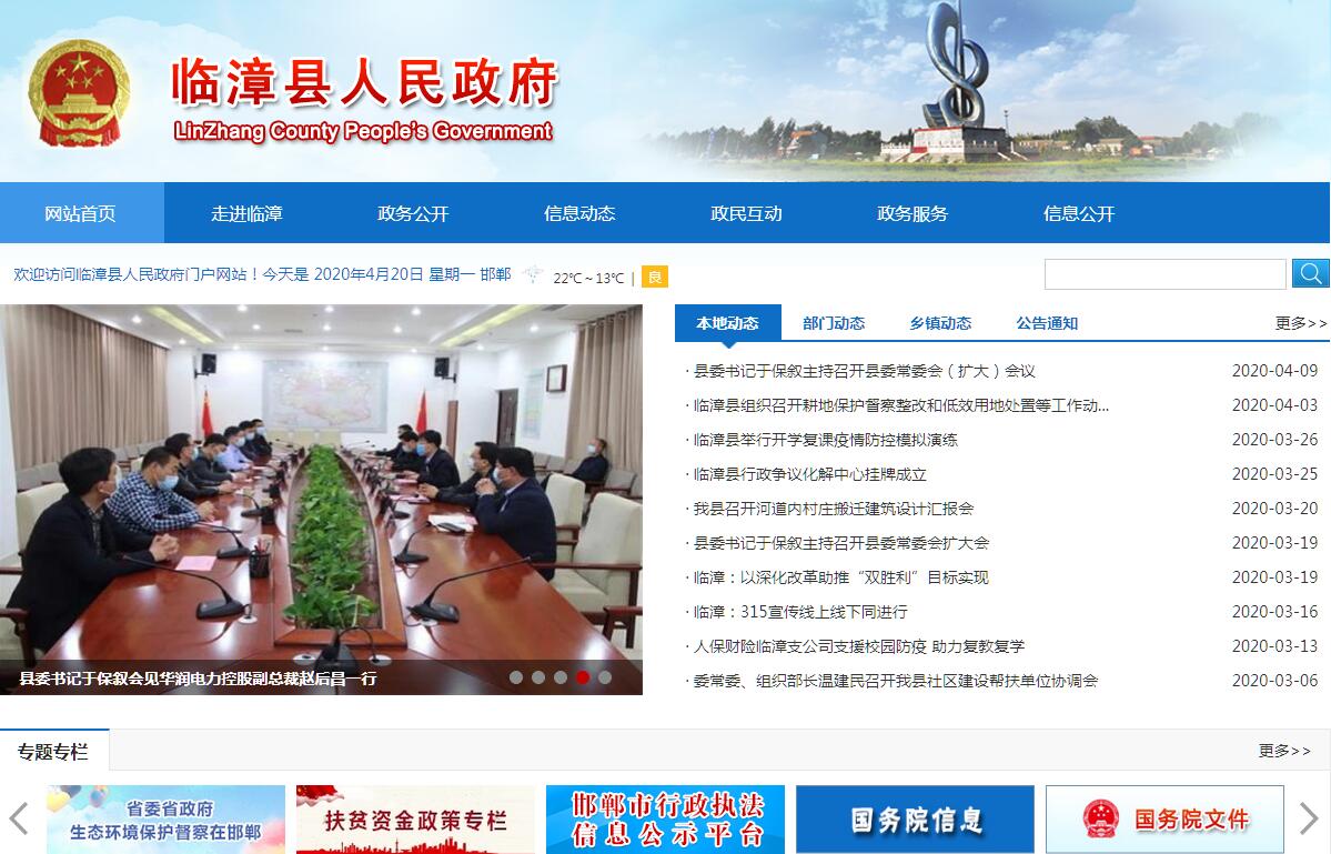 临漳县位于河北省最南端,总面积744平方公里,辖7镇7乡、425个行政村,总人口76万。是全国粮食生产百强县、全国绿化模范县、国家级园林县城、国家水利风景区、省级卫生县城、首届省级文明县城。2018年,全县地区生产总值完成136亿元;全部财政收入完成8.96亿元,一般预算收入完成5.18亿元;社会消费品零售总额55亿元;城镇居民可支配收入29390元,农村居民可支配收入15447元;规上工业增加值增长10.4 %;服务业增加值增长12%。经济社会发展五项主要指标综合排位连续两年位居全市第二。经济、社会、文化等各项事业繁荣发展、有序推进。概括来讲,至少具备六大优势。第一,临漳历史悠久,文化底蕴深厚。临漳古时称“邺”,享有“三国故地、六朝古都”的美誉,孕育了鬼谷子文化、西门豹文化、都城建筑文化、建安文化、佛教文化、成语典故文化六大文化脉系。近几年来,立足深厚文化底蕴,充分利用文化资源,相继成立了文化园区管委会,建设了文化园区创客基地,实施了邺城遗址产业园、鬼谷子文化产业园、邺城博物馆、邺都文化创意园、佛造像博物馆等旅游项目,打造了精品旅游路线和星级旅游景区,年接待游客近百万人次,文化旅游的社会效应和经济效益日益突显。2017年,我们启动了《临漳县全域旅游规划》,邺城国家考古遗址公园成功立项,邺南城宫殿区抢救性发掘,将进一步扩大临漳的知名度和影响力。第二,临漳区位独特,交通方便快捷。临漳地处晋冀鲁豫四省交界区,位于京津冀协同发展和中原经济区两大国家级战略的交汇处,政策优势明显、辐射面积极广、投资潜力十足,300公里范围内,就包含了石家庄、太原、郑州、济南四个省会城市,辐射人口近3亿,市场潜力巨大。交通也非常便捷,京港澳高速、石武高铁、京广铁路横穿南北,县城西距107国道、京广铁路10公里,距邯郸机场15公里。特别是西出口高速公路连接线、南出口临邺大道与京港澳高速“邺城口”、北出口邯临快速通道、东出口与邯大高速连接线建成通车,形成了“两条快速通道直达市区,四个高速出口连接临漳”的交通网络,实现了“十分钟上高速,一刻钟进市区”。可以说,占据了临漳,就拥有了中原;占据了临漳,就辐射了华北。第三,临漳农业发达,资源非常丰富。作为农业大县、产粮大县,具备优越的农业资源。2017年,粮食生产实现“十四连丰”,年产优质粮食近60万吨,综合生产能力全省第三,农业园区被评为省级农业园区;猪、牛、羊、鸡、兔等畜禽饲养量2400万头(只),饲料市场潜力巨大;年产肉类禽蛋11万吨,果品蔬菜52万吨,农副产品资源十分丰富。我们立足农业大县优势,坚持发展高效农业、优质农业、生态农业,引进建设了一批龙头项目,形成了产业集群。同时,临漳劳动力资源充足,且成本优势明显,完全能够保证用工需求。第四,临漳县城优美,城镇功能完善。实施绿水进城,高标准建设了10大公园、30个小游园,公园面积达到2840亩,城区绿地率达到40%。开挖整修湖渠十多处,形成生态水面近千亩,邺城公园被评为“国家级水利风景区”,启动建设了环城水系。实施健康进城,启动体育健身公园和狄公苑半程马拉松赛道建设,引导群众开展全民健身活动。实施文化进城,打造了特色街道、精品建筑,推进了公园主题化改造,处处融入文化符号,彰显汉风魏韵。实施产业进城,引进建设了红星美凯龙、信和商厦等商贸项目,推进了人天科技、教育园区建设,城市经济不断繁荣。依托经济开发区和现代农业园区,加快产业向园区聚集,推进园区和城市资源共享、设施配套、功能互补。第五,临漳前景广阔,发展态势强劲。始终把工业强县作为第一要务,高标准建设了新城工业园和邺都工业园,被评为省级经济开发区,总面积达到15.6平方公里。开发区电力、通信、天然气、雨污管网等实现全覆盖,达到了“九通一平”标准,公租房、创业服务中心、企业孵化中心等设施已建成投用。在此基础上,成功引进了邯钢(临漳)工业园、五粮液临漳灌装工业园、平原禾丰、人天科技、红星美凯龙、蓝堡住工、英虎机械等一批战略项目,初步形成钢后延加工、装备制造、新型建材、食品工业等产业集群,发展态势强劲。第六,临漳风清气正,投资环境优越。近几年来,按照“墙内的事情企业办、墙外的事情政府办”理念,进一步优化发展环境,行政审批局组建运行,并对项目审批实行“一条龙审批”“一站式办理”,对项目建设实行“帮办、代办、领办”制度,每一个重点项目,都明确了“一名县级领导、一个部门、一套班子”,在落地建设、生产经营等阶段,提供全方位、全过程、高效率的服务。