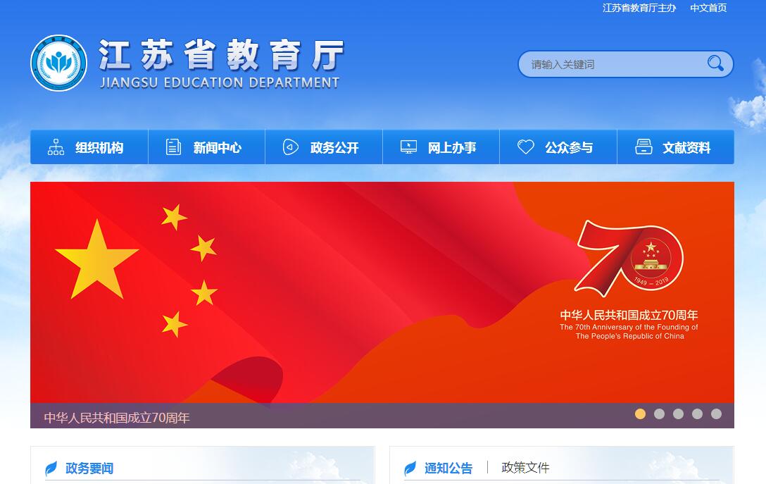 江苏省教育厅(省委教育工委)负责贯彻落实中央关于教育工作的方针政策和省委的决策部署,在履行职责过程中坚持和加强党对全省教育工作的集中统一领导。其主要职责是:(一)指导教育系统党的建设工作。按照干部管理权限,承担厅管高职院校领导干部的动议、考察、任免等相关工作和日常管理工作,具体指导高校领导班子思想政治建设。(二)指导教育系统宣传思想文化工作。指导高校思想理论建设、宣传舆论阵地建设、校园文化建设和精神文明建设。协调、指导高校做好维护政治稳定工作。指导高校思想政治教育和意识形态管理工作。(三)指导教育系统统战与群众团体工作。会同省有关部门指导高校统战工作,指导高校做好民主党派、党外知识分子、侨联、台联、民族宗教工作,指导高校工会、共青团、妇联等群众团体开展工作。(四)指导学校安全风险防控体系建设。指导、协调教育系统维护稳定以及学校安全保卫工作,指导协调学校做好重大安全事件处置工作。指导学校后勤管理与改革工作。(五)贯彻党和国家的教育方针、政策,落实国家有关教育的法律法规,拟订教育改革发展的政策和规划,起草有关地方性法规、规章草案并组织实施。落实立德树人根本任务,发展素质教育。(六)负责各级各类教育的统筹规划和协调管理,指导各级各类学校建设和发展,负责全省教育基本信息的统计、分析和发布。(七)负责本部门教育经费的统筹管理,参与拟订教育经费筹措、教育拨款、教育收费、国有资产、教育基建投资等方面的政策,负责统计全省教育经费投入情况。(八)指导全省基础教育改革与发展。指导和推进义务教育均衡发展,指导和推进普通高中教育、幼儿教育和特殊教育工作。制定基础教育教学基本要求、教学基本文件和评估标准,组织审定基础教育地方课程教材,促进教育教学改革。(九)指导全省职业教育改革与发展。制定职业教育教学指导文件和教学评估标准,指导职业教育教材建设,促进教育教学改革。开展职业指导工作。(十)指导全省高等教育改革与发展。深化高校管理体制改革,切实提高高等教育质量。指导高校教学改革,统筹指导各类高校教育和继续教育,指导改进高等教育评估工作。(十一)指导学校德育工作、体育卫生与艺术教育、劳动教育工作以及国防教育工作。(十二)指导全省教师工作,组织、指导实施教师资格制度,组织、指导教育系统专业技术职务评审聘任工作,指导协调教育系统人才队伍建设、人事分配制度改革工作。(十三)负责各类高等学历教育招生考试和学籍学历管理工作,拟订高校招生政策,会同省有关部门编制高等教育招生计划。参与拟订普通高校毕业生就业创业政策,指导普通高校开展大学生就业创业指导和服务工作。(十四)规划、指导高校的自然科学和哲学社会科学研究,协调指导高校参与国家、区域创新体系建设和承担国家、省各类科技计划以及重大哲学社会科学研究项目的实施工作,指导高校科技创新平台的发展建设,指导教育信息化和产学研结合等工作。(十五)组织、指导教育系统对外交流与合作,管理全省出国留学和来江苏留学人员的有关工作以及与港澳台的教育交流合作工作,指导汉语国际推广工作。(十六)指导全省教育督导工作,负责组织和指导各级各类教育的督导检查和评估验收工作,组织指导基础教育发展水平、质量的监测工作。(十七)负责全省语言文字工作,指导语言文字规范化建设,监督检查语言文字的应用情况,负责普通话推广和普通话水平测试管理工作。(十八)负责全省学位与研究生教育工作,监督实施国家的学位制度。(十九)完成省委、省政府交办的其他任务。