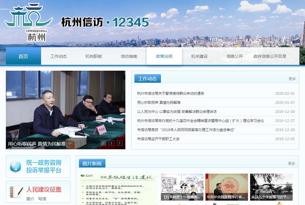 杭州市信访局(“12345”市长公开电话受理中心)是负责全市信访工作的部门,列党委机构序列。其主要职责是:(一)负责处理人民群众给市委、市政府的来信来访,承办上级机关和市委、市政府领导转办、交办的信访事项;向区、县(市)和市直属各单位转办、交办信访事项,并督促检查其办理情况。(二)协调处理重要信访问题以及群众集体来市或去上级机关上访和异常、突发性信访事件。(三)负责受理和处理基层单位、人民群众通过市长公开电话和市长信箱、“12345”短信平台等渠道反映的问题。(四)调查、研究、分析信访和市长公开电话工作情况、信访矛盾纠纷,及时准确地向市委、市政府提供信息和解决问题的建议。(五)指导全市信访和市长公开电话业务工作,研究、起草有关信访和市长公开电话工作的法规、规章草案;总结推广信访和市长公开电话工作经验,提出加强和改进信访和市长公开电话工作的意见和建议。(六)组织开展人民建议征集和处理工作。(七)负责市政府的信访事项复查复核工作。(八)组织培训信访和市长公开电话工作人员,指导信访和市长公开电话工作部门的办公自动化建设。(九)根据信访条例规定,对有关信访干部和信访群众提出奖励或处罚建议。(十)承办市委、市政府交办的其他事项。