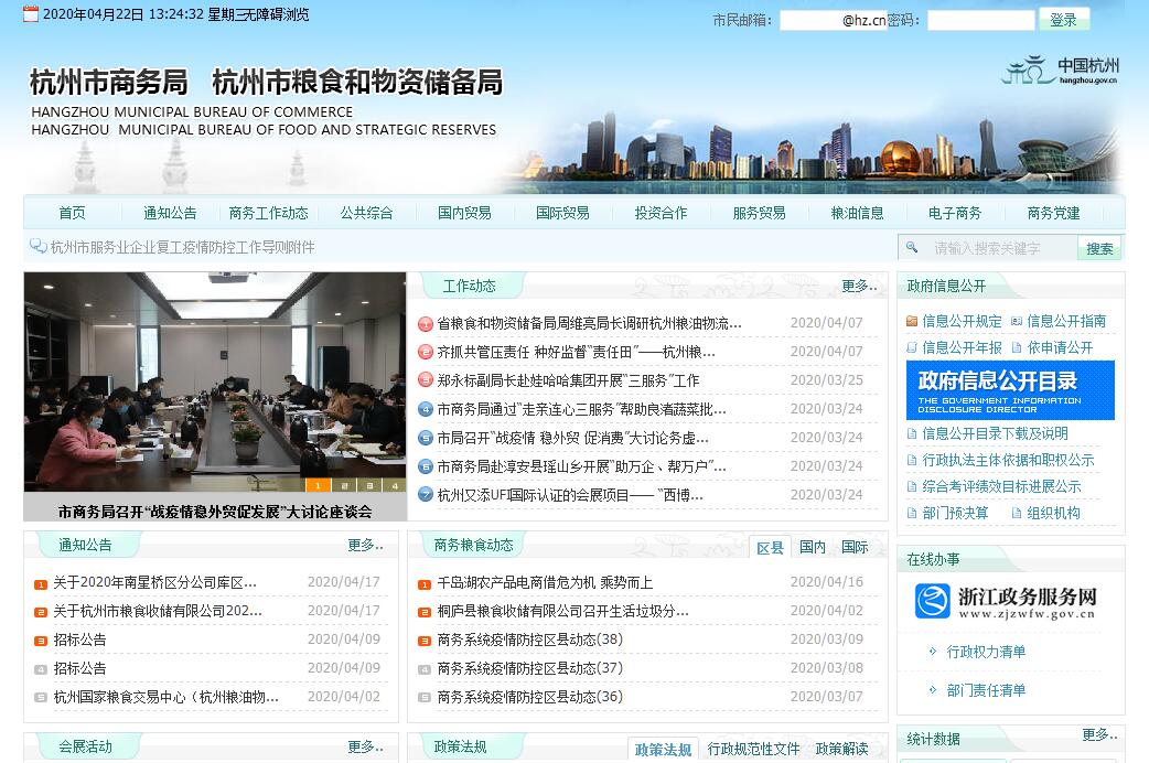 杭州市商务局(杭州市粮食和物资储备局)主要职责:(一)贯彻执行国家和省国内外贸易、粮食、外商投资和对外经济合作的法律、法规、规章和方针政策并组织实施;受委托起草全市商贸服务、粮食行业、对外经济合作地方性法规、规章草案,经审议通过后组织实施。(二)研究国内外经济发展趋势,组织拟订经济对外开放和开拓国内市场发展中长期规划及年度计划,协调全市经济对外开放布局;拟订并实施全市国内外贸易、国际经济合作的发展规划;监测分析商务运行状况。(三)负责制定并组织实施商贸服务业、粮食流通业的发展规划;负责全市商贸服务和粮食行业管理工作;指导商贸服务、粮食行业开展服务质量管理工作;指导区、县(市)商贸服务业、粮食流通业工作;指导商贸服务、粮食行业协会等有关社会中介组织工作。(四)负责组织拟定电子商务发展中长期规划并组织实施,指导推动全市电子商务发展和应用;促进全市流通产业体系建设,推进流通产业结构调整,推进连锁经营、商业特许经营、物流配送、现代会展、电子商务等流通方式发展;指导商贸服务业和社区商业发展;推进流通体制改革,培育大型流通企业,促进中小流通企业发展;承担全市“老字号”牵头工作,培育“老字号”等商贸品牌;负责制定药品流通发展规划和政策,负责制定促进食品(包括酒类)流通、餐饮服务发展规划和政策,负责食品(包括酒类)的流通、餐饮服务的行业管理。(五)负责制定全市商贸服务业网点发展规划,指导网点建设;统筹规划全市商品市场体系,培育发展商品交易市场;推进农村市场体系建设;组织实施农村现代流通网络工程建设;牵头协调再生资源回收监督管理工作,推进再生资源回收体系建设;负责成品油仓储行业和市本级零售经营网点发展规划的编制、上报;负责新(迁)建、扩建成品油库(加油站)规划确认等相关申请的审核、上报;负责成品油批发、仓储企业经营许可申报及日常经营监督管理工作;负责市本级成品油零售企业经营许可的初审及日常经营监督管理工作。(六)负责建立健全全市主要生活必需品市场供应应急管理机制,会同有关部门组织实施主要生活必需品的市场调控;监测分析市场运行和商品的供求状况,调查分析商品价格信息,进行预测预警和信息引导;负责粮油、“菜篮子”等重要商品的储备供应;会同有关部门管理粮食风险基金;负责中小企业国际市场开拓资金项目的审核、申报工作。(七)负责拟订规范市场运行、流通秩序的政策;承担商务领域综合执法,参与打击侵犯知识产权、商业欺诈工作;指导商业信用销售,推动商务领域信用建设。(八)贯彻落实粮食购销政策,指导全市粮食购销等工作,组织落实“订单粮食”任务,推进粮食产销合作;组织实施粮食收购市场准入制度,负责粮食收购企业资格管理;保障军供粮和救灾粮等特殊群体的政策性粮食供应。(九)会同有关部门研究提出市级储备粮食规模、计划和动用市级储备粮食的建议,经批准后组织实施;指导储备粮食管理和粮食仓储设施建设工作,组织落实市级储备任务,负责市级储备粮食的库存安全;监督管理收购、储存环节的粮食质量安全;管理市属国有粮食企业。(十)指导和管理全市进出口商品和加工贸易;负责对外贸易促进体系建设工作,指导对外贸易转型升级;负责电子商务等国际贸易新方式的研究推广工作;指导机电和高新技术产品进出口工作;推动全市出口品牌体系建设,培育自主出口品牌;指导协调境外经贸合作区建设;推进各类出口基地和外贸公共服务平台建设。(十一)负责全市反倾销、反补贴、保障措施及国际贸易壁垒等的应对和指导工作;建立和完善进出口贸易摩擦预警与应对机制,组织开展进口产业损害调查与贸易救济等工作;受委托依法对全市经营者集中行为进行反垄断审查;推广进出口信用保险。(十二)指导外商投资工作,推动产业调整和技术升级;负责重大项目招引推进、协调工作;负责外商投资统计工作。(十三)负责全市国家级开发区和省级经济开发区的综合协调、指导和管理工作;审核、报批国家级开发区和省级经济开发区设立、升级和区域优化调整等工作;指导开发区外资引进工作;监测、分析开发区运行情况,承担开发区投资环境综合评价和考核工作;参与拟订并实施开发区发展规划和政策。(十四)负责监督管理境外投资、对外承包工程、劳务合作、多双边援助等对外经济合作业务;承担本市外派劳务和本市公民出境就业管理权益保护等相关工作。(十五)负责协调出入境检验检疫、海关、银行、保险、国税、外汇管理等单位与商务工作有关的事项;参与大通关建设和协调贸易便利化工作。(十六)承办市政府交办的其他事项。