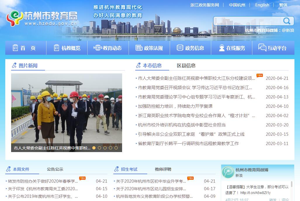 杭州市教育局主要职责:(一)贯彻执行国家、省有关教育的方针政策和法律法规;研究制定全市教育事业发展规划,研究全市教育改革和发展的重大问题;受委托起草教育地方性法规、规章草案,经审议通过后组织实施;制定和实施教育有关规范性文件。(二)指导和管理全市各级各类学校教育教学改革、教育科学研究、教学研究及现代教育技术工作;负责教育基本信息的统计、分析和发布。(三)负责市属高校领导班子建设和思想政治工作,维护学校稳定;负责直属学校(单位)干部队伍建设和党建工作;指导在杭部分民办高职院校和专修学院的党建工作。(四)统筹管理全市学前教育、基础教育、职业教育、高等教育、继续教育、特殊教育等工作;负责上城区、下城区、江干区、拱墅区、西湖区、杭州高新开发区(滨江)(以下简称杭州市区)普通高中、中等职业学校(不含技工学校,下同)的设置、更名、撤销与调整的办学审批工作;统筹全市中等职业学校专业设置工作;协调、指导全市民办学校的管理工作;指导全市中小学校、幼儿园、成人学校的布局调整工作;指导全市中小学校、幼儿园基本建设及校舍改造工作。(五)指导、协调和监督各区(县、市)政府、各部门有关教育工作,负责全市教育督导与评估工作。(六)指导全市各级各类学校的思想政治工作以及德育、体育卫生与艺术教育、国防教育等工作。(七)统筹管理全市学历教育及其招生考试工作,改革招生制度和办法;参与制定市属高校的招生计划;会同有关部门制定市区高中段全日制学历教育的招生计划并组织实施;规划指导成人自学考试。(八)负责全市教师工作,组织实施教师资格制度;组织指导各级各类学校的教师培训、专业技术人员职务评聘等工作;制定师资管理规章制度,统筹规划并指导教育系统人才队伍建设。(九)会同有关部门拟订教育经费筹措、教育拨款、教育基建投资等有关政策;会同有关部门管理公办中小学、幼儿园的收费,监测全市教育经费筹措和使用情况;负责直属学校(单位)资产的监督管理。(十)指导、协调全市教育系统的国际交流与合作以及与港澳台地区的交流与合作,做好汉语言的国际推广;管理直属学校(单位)的国际交流与合作以及与港澳台地区的交流与合作。(十一)负责管理全市语言文字工作;指导、协调、监督和检查全市语言文字的规范应用,指导推广普通话,负责普通话和规范汉字的培训、测试工作。(十二)负责指导、协调各级各类学校校园安全、保卫、稳定和依法保护未成年人合法权益工作。(十三)指导局主管的社团工作;指导直属学校(单位)信息化建设和全市教育技术装备工作;指导全市奖学助学、勤工俭学以及学校后勤管理服务工作;指导全市教育系统内部审计工作,并对直属学校(单位)实施内部审计。(十四)承办市政府交办的其他事项。