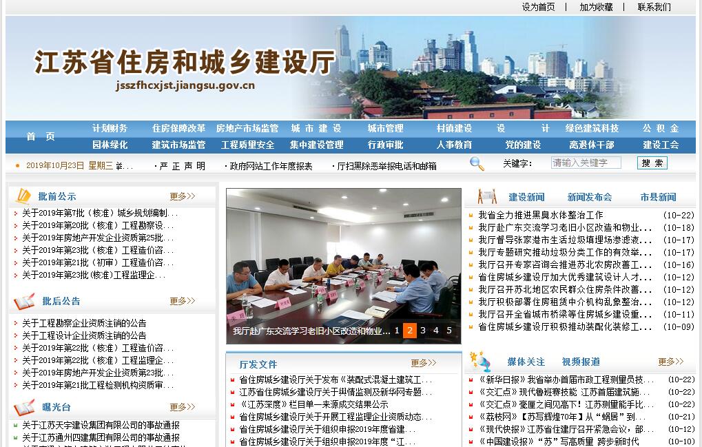 江苏省住房和城乡建设厅的主要职责是:(一)承担规范全省住房和城乡建设管理秩序的责任。起草住房和城乡建设地方性法规、规章草案,制定规范性文件;研究提出住房和城乡建设重大问题的政策建议。编制全省住房和城乡建设发展规划。指导全省住房和城乡建设综合行政执法工作。组织开展全省住房和城乡建设信用体系建设工作。(二)承担全省城镇住房保障和住房制度改革的责任。拟订住房政策、住房保障政策和住房制度改革方案,并指导实施;组织编制全省住房和住房保障发展规划、年度计划并监督实施。推进全省住房保障体系建设,建立并指导保障性安居工程运营管理制度的实施。会同有关部门做好中央、省有关廉租住房资金安排,指导和监督市、县组织实施。(三)承担规范房地产市场秩序、监督管理房地产市场的责任。拟订房地产业发展和市场监管政策并监督执行;提出房地产业的行业发展规划并监督实施;制定房地产开发、住宅产业化与性能认定、房地产交易与产权管理、房屋租赁、房屋面积管理、房地产估价与经纪管理、物业管理、住宅装饰装修、国有土地上房屋征收等规章制度并监督执行。(四)承担住房公积金管理和有效、安全使用的监督责任。会同有关部门拟订住房公积金政策及发展规划并组织实施;制定住房公积金缴存、使用、管理和监督制度。监督全省住房公积金和其他住房资金的管理、使用和安全。管理住房公积金信息系统。(五)承担设计行业发展和管理的责任。拟订工程勘察设计咨询业发展规划、技术政策和规章制度。指导城市设计、建筑设计、工程勘察设计工作,会同有关部门负责历史文化名城(名镇、名村)和历史文化保护区的申报、保护规划的审查报批和监督实施工作。监督管理施工图设计审查工作。组织编制城乡建设抗震防灾规划并监督实施,负责各类房屋建筑及其附属设施和市政设施抗震设防监督管理,组织超限高层建筑工程抗震设防审查,指导各地开展应急避难场所建设。(六)承担指导市政公用事业发展和市政基础设施建设、管理的责任。拟订全省城市市政基础设施和市政公用事业发展规划,并指导实施。指导和规范全省市政公用事业发展。指导城市市政基础设施的建设、管理工作,推进海绵城市、城市地下综合管廊建设工作。组织全省人居环境奖的组织评选工作。(七)承担指导城市管理工作的责任。拟定城市管理行政执法、市容环卫等城市管理的政策措施,并实施业务指导、组织协调、监督检查和考核评价。指导城镇市容、环卫、数字化城市管理工作及环境综合整治工作。指导市容、环卫设施的建设、维护及运营管理。(八)承担监督指导全省城市园林绿化工作的责任。制定全省城市园林绿化政策、发展规划、技术规范并指导实施。指导城市规划区内的绿地系统构建、生物多样性及古树名木保护等工作。指导城市公园建设管理、古典园林保护修复、传统园林营造技艺传承等工作。指导“园林城市”“生态园林城市”建设;负责江苏省园艺博览会的组织工作。(九)承担规范和指导全省村镇建设的责任。协同推进乡村振兴战略,指导村镇建设规划编制,拟订村庄和小城镇建设政策并指导实施。指导农村住房建设和危房改造。指导小城镇和村庄的人居环境改善工作。指导全省美丽宜居乡村建设工程、特色田园乡村、重点中心镇和特色小城镇的建设。指导全省传统村落保护和发展工作。(十)承担建立科学规范的工程建设标准体系的责任。制定和发布工程建设地方标准及标准设计并监督执行。制定和发布工程建设全省统一定额、计价依据和工程造价管理规章制度,监督指导各类工程建设标准定额的实施和工程造价计价,组织发布工程造价信息。(十一)承担监督管理建筑市场、规范市场各方主体行为、推进建筑业发展的责任。拟订建筑业行业发展战略、中长期规划、改革方案、产业政策、规章制度并监督执行。制定规范建筑市场主体及中介服务机构行为的规章制度并监督实施;指导房屋建筑和市政基础设施工程项目招投标活动、施工许可、竣工验收和备案的监督管理。负责工程建设实施阶段的监督管理,指导工程项目建设、合同管理和工程风险管理。促进建筑企业对外开拓市场、参与国际工程承包。拟订全省政府投资工程集中建设的规章制度并监督执行,负责省级政府投资非盈利性工程项目集中建设日常指导和监管。(十二)承担建筑工程质量安全监管的责任。制定建筑工程质量、安全生产的规章制度,指导建筑工程质量监督、安全监督工作。制定建筑业技术政策并指导实施。参与省政府组织的工程重大安全事故的调查处理,参与国家和省审批立项的房屋建筑和市政基础设施重大建设项目工程质量、安全、施工现场监管和竣工验收的管理工作。组织评审省级优质工程,审核推荐国家级优质工程。(十三)承担推进科技进步、绿色建筑发展、建筑节能、城镇建筑减排的责任。制定建设科技发展规划并指导实施。会同有关部门拟订绿色建筑、智慧建筑和建筑节能的政策、规划并监督实施。组织建筑行业重大科技项目研究和重大建筑节能项目实施。推进建筑产业现代化。指导建筑能效测评和绿色建筑标识管理。(十四)指导全省住房城乡建设行业人才培养、职业教育、执业资格考试与注册