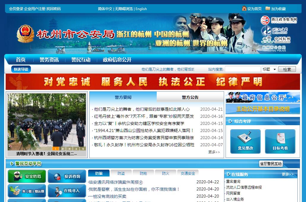 杭州市公安局是杭州市人民政府下设主管全市公安工作的职能部门,受市政府、浙江省公安厅双重领导。各县(县级市)区设公安局(分局),在镇、乡、街道设派出所。其主要职责是:一 、贯彻执行党和国家有关公安工作的方针、政策、法律、法规和市委、市政府、上级公安机关的指示,研究起草本市公安工作的地方性法规、规章草案和规范性文件,经审议通过后组织实施;部署、指导、监督、检查全市公安工作。二 、管理全市公安机关110报警指挥系统,处理市区110报警、群众求助和监督电话,对紧急治安事件和重大紧急情况,实施统一指挥调度。三 、掌握影响稳定、危害国内安全和社会治安的情况,分析形势,提出对策措施。四 、主管和指导全市各类刑事案件、经济案件的侦查等工作,组织、协调特别重大案件和跨区、县(市)重大案件的侦破工作。五 、指导、监督全市公安机关依法查处危害社会治安秩序的行为,依法管理特种行业,组织协调对重、特大治安事件和突发性事件的处置工作,管理集会、游行、示威活动。六 、依法管理、指导中国公民出入境和外国人在中国境内居留、旅行的有关工作。七 、领导、监督全市消防工作。八 、负责全市内河水上的治安管理。九 、负责对全市公安机关维护道路交通安全、交通秩序工作的管理、指导和监督;负责全市机动车辆、驾驶员管理工作,处理市区交通事故,指导处理全市的重、特大交通事故。十 、负责指导全市公安机关对国家机关、社会团体、企事业单位和重点工程的治安保卫工作以及群众性治安保卫组织的管理指导工作。十一、指导全市公安机关对公共信息网络的安全监察,组织实施网络监控工作。十二 、指导监督全市公安机关依法承担的执行刑罚和对看守所、治安拘留所、强制戒毒所、收容教育所、安康医院的管理工作;负责收容教养审批工作,承担市政府劳动教养委员会日常工作。十三、组织实施对来杭的党和国家领导人、重要外宾以及重大活动、重要会议的安全警卫工作。十四 、组织、指导禁毒缉毒工作,承担市禁毒工作领导小组办公室的日常工作。十五、组织实施公安科学技术工作;规划全市公安信息技术、刑事技术等建设;负责全市技术防范工作和社会公共安全产品的监督管理。十六 、负责全市公安机关装备、被装和经费等警务保障工作。十七、按规定的权限,领导和指挥市武警部队执行公安任务。十八、协同区、县(市)党委管理区、县(市)公安机关领导干部;组织、指导全市公安队伍建设、民警教育训练和宣传等工作。十九 、分析队伍状况,研究、制定全市公安队伍监督管理的规章制度;组织指导公安机关警务督察工作;指导全市公安机关执法活动,对公安机关及其人民警察的执法情况进行监督;按规定权限实施对干部的监督;查处或督办重大违纪案件。二十、指导林业公安机构等的业务工作。二十一、承办市委、市政府和上级公安机关交办的其他事项。