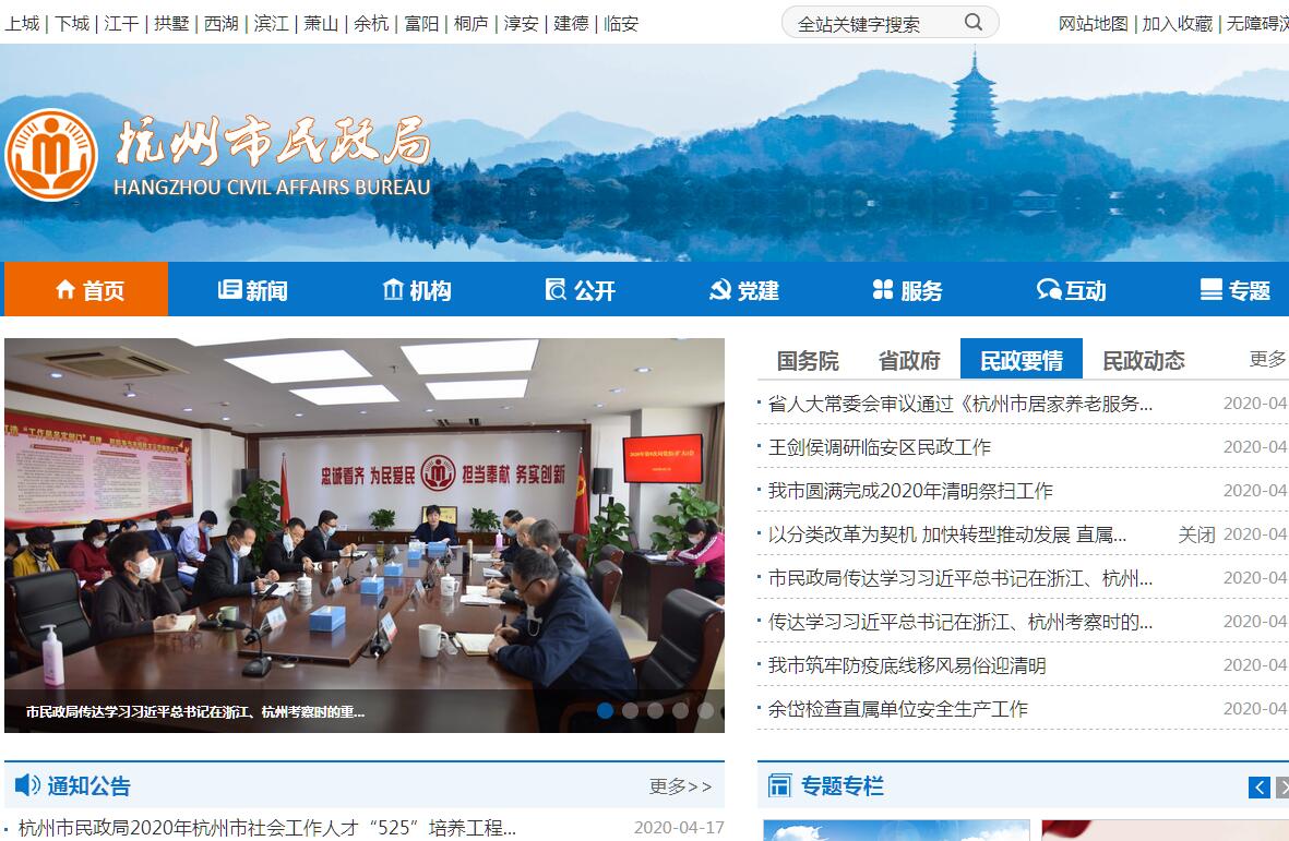 杭州市民政局主要职责:(一) 贯彻执行国家有关民政工作的法律、法规,受委托起草有关民政行政管理的地方性法规、规章草案,经审议通过后组织实施;制定全市民政事业的发展规划、工作计划和政策,并组织实施;指导基层民政工作。(二) 会同有关部门拟订全市社会工作的发展规划、工作计划和政策,推进全市社会工作人才队伍建设和相关志愿者队伍建设。(三) 负责民政事业的计划财务和统计工作,指导、监督民政事业费的使用管理;负责市本级福利彩票公益金的使用管理工作。(四) 负责全市拥军优属、优待抚恤和烈士褒扬工作;评定伤残等级,承办烈士称号的报批工作。(五) 负责军队离退休干部、复员退伍军人和军队无军籍退休退职职工的接收安置、服务管理工作;协调、指导全市军供管理和保障工作。(六) 组织、协调全市救灾工作,核查、上报、发布灾情,核定灾害等级;接收、管理、分配救灾款物并监督使用;组织制定自然灾害应急救助预案,指导避灾安置场所的建设和管理;指导灾区进行灾民生活自救和生产自救。(七) 牵头拟订全市社会救助规划、政策和标准,健全城乡社会救助体系;组织实施城乡居民最低生活保障、临时救助、困难群众救助工作;负责全市城市低收入家庭认定工作;负责农村五保对象的供养工作,指导农村敬老院的建设和管理;组织、管理和指导扶贫济困、社会捐赠等社会互助活动和对口帮扶工作。(八) 负责指导城乡基层政权和基层群众自治组织的建设;指导社区服务管理和村务公开民主管理工作,推进城乡社区建设。(九) 负责全市地名管理工作;承担行政区划和行政区域界线的勘定及日常管理工作,调处行政区域边界争议。(十) 拟订全市社会福利事业发展规划、政策和标准;指导全市社会福利事业的发展工作;依法管理和指导慈善事业的发展工作;负责社会福利企业的管理工作;承担老年人、孤儿等特殊困难群体的权益保障工作;组织、指导养老服务体系的建设。(十一) 负责全市婚姻登记管理、收养登记管理和殡葬管理工作;负责城市生活无着的流浪乞讨人员的救助管理工作。(十二) 负责全市社会团体和民办非企业单位的登记和监督管理工作。(十三) 负责全市水库移民和“三峡”库区迁入我市移民的安置和扶持开发工作,负责处理移民遗留问题。(十四) 承办市政府交办的其他事项。