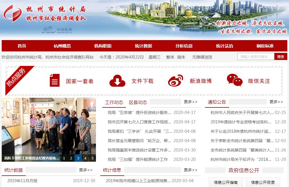 杭州市统计局主要职责:(一)负责组织领导和协调全市统计工作,确保统计数据真实、准确、及时。贯彻执行国家、省统计法律、法规和规划,受委托起草有关统计行政管理的地方性法规、规章草案;监督、检查各区、县(市)及各部门的统计工作。(二)建立健全国民经济核算体系和统计指标体系,执行全国统一的基本统计报表制度;监督、检查各区、县(市)及各部门的国民经济核算工作;组织协调各区、县(市)及各部门、各统计中介机构的社会经济调查工作,依法审批或备案各区、县(市)及各部门的统计调查项目;按照全市经济和社会发展的需要,建立并实施相关的地方统计调查、监测、评价等制度;组织实施全市统计报表管理工作;依法查处统计违法行为。(三)承担组织重大国情国力和省情省力普查工作,组织实施市情市力调查工作;组织实施粮食、能源、服务业统计监测工作;搜集、整理、提供全市性及国内有关城市的基本统计资料;对国民经济、社会发展和科技进步情况进行统计分析、统计预测和统计监督,向市委、市政府及有关部门提供统计信息和咨询建议。(四)统一核定、管理、公布全市性基本统计资料,完善统计信息发布制度,定期向社会发布全市国民经济和社会发展情况的统计信息。开展社会经济发展评价和民生民意调查工作。(五)建立健全和管理全市统计信息自动化系统和统计数据库体系,组织指导和协调各区、县(市)及各部门的统计信息计算机网络建设和数据库建设。(六)协助各区、县(市)党委管理区、县(市)统计局局长、副局长;组织指导全市统计基础建设和统计队伍建设;组织实施统计单位登记制度;负责全市统计单位名录库建设和管理;会同有关部门开展统计专业资格考试和职务评聘工作。(七)组织指导全市统计科学研究、统计教育培训、统计中介机构发展工作,开展统计工作和统计科学的交流与合作。(八)承办市政府交办的其他事项。杭州市社会经济调查局主要职责:(一)承担全市统计基本单位名录库的具体管理工作。(二)承担国家统一部署的重大国情国力普查工作的具体实施。(三)承担农村统计调查、粮食监测、小城市和中心镇建设统计监测工作。(四)负责全市除国家调查样本外的满足地方需要的规模以下工业抽样调查,限额以下批发零售贸易、住宿餐饮服务业抽样调查,开展企业景气调查和非工业能源消费调查工作。(五)负责除全市国家调查点样本外的满足地方需要的住户和农村低收入户调查工作。(六)负责全市社情民意调查工作。(七)组织开展全市经济社会调查研究,指导区县(市)地方调查队业务工作。(八)完成市委、市政府交办的其他事项。