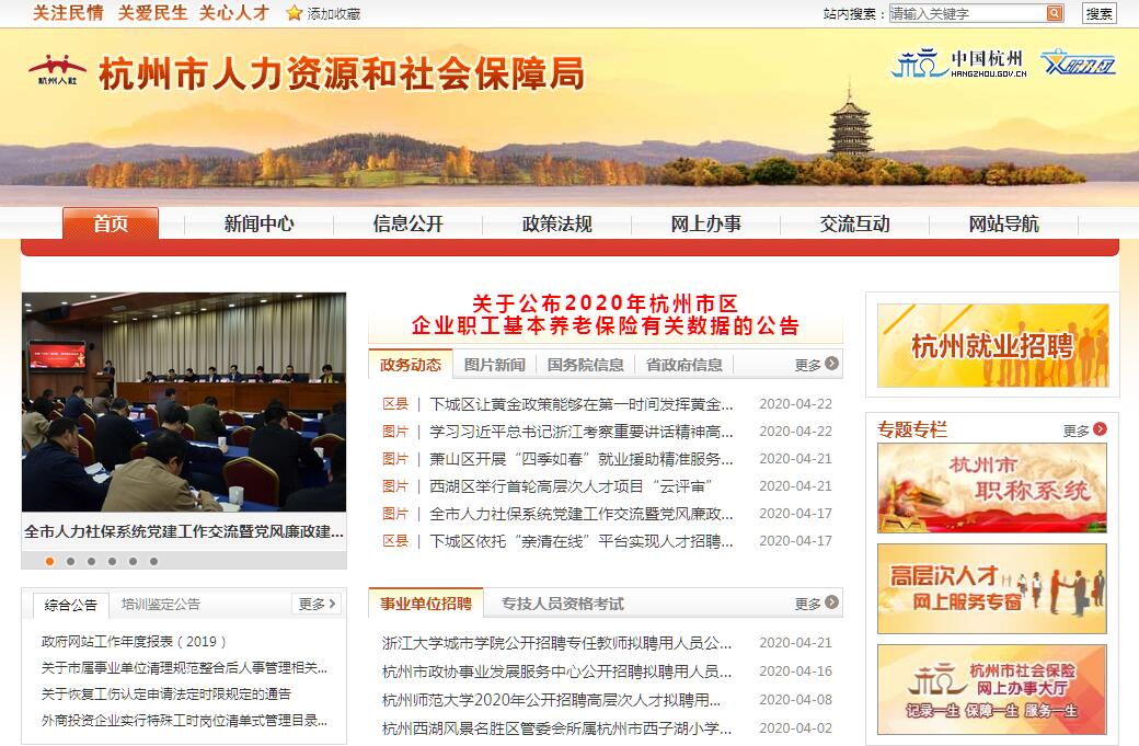 杭州市人力资源和社会保障局主要职责:(一)贯彻执行人力资源和社会保障工作的法律法规规章。起草人力资源和社会保障工作地方性法规、规章草案。编制全市人力资源和社会保障事业发展规划,拟订相关政策、改革方案并组织实施和监督检查。负责全市人力资源和社会保障相关领域的统计工作。(二)负责促进就业创业工作。拟订统筹城乡的就业发展规划和政策,完善公共就业创业服务体系和就业援助制度。牵头拟订高校毕业生就业政策和大学生创业政策,负责毕业生离校后的就业创业指导和服务工作,推进大学生创业实训和见习工作。负责全市技工院校毕业生就业的指导工作。建立健全就业失业的预测预警、监测分析制度。(三)负责综合管理全市人才开发工作。协同拟订并组织实施全市人才发展战略、规划和人才工作有关重要政策措施,指导和协调全市人才选拔、培养、引进等人才项目的组织实施。负责全市专业技术人才队伍和技能人才队伍的综合管理。牵头推进深化职称制度改革,实施专业技术职(执)业资格制度。推进技工院校建设,组织拟订技能人才培养、评价、使用和激励政策。完善技能人员职业资格制度,统筹建立面向城乡劳动者的职业技能培训制度。拟订人力资源市场发展规划和人力资源服务业发展、人力资源流动政策。负责人才国际交流合作有关工作。负责博士后相关管理工作和留学人员来杭工作。(四)负责基本养老保险、工伤保险和失业保险工作。拟订基本养老保险、工伤保险和失业保险政策和标准,依法对其基金进行监督,提高基金统筹层次。会同有关部门完善社会保险市级调剂制度和组织编制基本养老保险基金、工伤保险基金、失业保险基金预决算草案。组织实施预测预警分析,拟订应对措施,实施预防、调节和控制。拟订补充养老保险基金管理监督制度并组织实施。完善经办服务体系建设。负责各类补充保险相关内容的审核和备案。负责全市企业退休人员社会化管理工作。(五)会同有关部门拟订全市企事业人员、机关工勤人员收入分配、福利和离退休政策,建立企事业单位人员工资正常增长和支付保障机制。综合管理事业单位人员和机关工勤人员人事工作,会同有关部门指导事业单位人事制度改革。综合管理政府表彰奖励和评比达标工作。(六)统筹拟订劳动、人事争议调解仲裁制度和劳动关系政策,完善劳动关系协调机制,制定消除非法使用童工政策和女职工、未成年工特殊劳动保护政策,制定完善工时制度和职工休假制度,组织实施劳动监察,协调劳动者维权工作,依法查处劳动违法案件。会同有关部门拟订农民工工作、家庭服务业发展综合性政策和规划,推动相关政策的落实。(七)完成市委、市政府交办的其他任务。