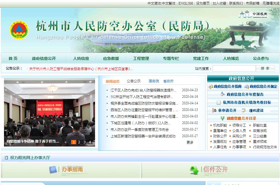 杭州市人民防空办公室主要职责:(一)贯彻执行国家和省人防工作的方针、政策和法律、法规、规章,并对执行情况进行督促检查;受委托起草有关人防(民防)方面的地方性法规、规章草案,拟订相关规范性文件,并组织实施;指导和依法开展全市人防(民防)行政执法工作。(二)根据国民经济和社会发展规划以及国防建 设需要,组织编制人防(民防)建设规划和计划;参与编制城市地下空间规划以及人防建设与城市建设相结合的规划。(三)按规定权限负责人防工程和兼顾人防工程的审批、质量监督、竣工验收等工作;负责地下空间开发兼顾人防要求的审批工作;负责人防工程改造、拆除、报废审批工作;指导人防工程和兼顾人防工程的维护管理、平时开发利用、战时平战转换和地下空间开发建设中落实人防要求等工作。(四)组织实施人防指挥通信、警报、指挥所、应急疏散场所的建设与管理;组织制定城市人防行动方案和突发公共事件人员防护保障行动方案;会同有关部门提出重点防护目标并报上级部门审批,指导重要经济目标单位制定平时防护措施和战时抢修方案;利用人防指挥、通信和群众防空组织的作用,参与城市平时抢险救灾、应急救援工作;组织开展防空防灾演练。(五)组织、协调开展防空防灾知识综合宣传教育和技能培训;组织制定人防教育培训计划,确定教育培训内容,并会同有关部门组织实施;指导相关单位组建训练通信、防化防疫、医疗救护、抢险抢修、消防、治安、运输等群众防空组织;指导人防志愿者队伍建设。(六)负责人防国有资产、经费和物资管理工作;依法筹集人防建设资金,编制人防经费预决算;组织开展内部审计工作;负责监督检查区、县(市)人防经费使用情况。(七)负责人防(民防)科学技术管理工作;组织开展人防(民防)科学技术研究和学术交流活动,推广应用科研成果。(八)指导区、县(市)开展人防(民防)业务工作。(九)承办市政府、杭州警备区、市国防动员委员会交办的其他事项。(十)战时根据市委、市政府和军事指挥机构的决定,发布人防的有关命令和指示;适时开设指挥所,实施有效指挥。