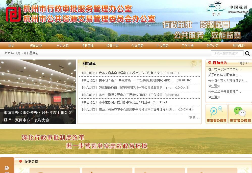 杭州市行政审批服务管理办公室(杭州市公共资源交易管理委员会办公室)主要职责:(一)贯彻执行国家、省、市有关行政审批服务和公共资源交易管理工作的法律、法规、方针政策;受委托起草有关地方性法规、规章草案,并提出相关改革的意见和建议,经审议通过后组织实施。(二)统筹管理全市行政审批服务和公共资源交易工作;负责指导、监督区、县(市)行政审批服务和公共资源交易工作。(三)研究提出行政审批服务和公共资源交易事项进入或退出行政审批服务、公共资源交易平台的意见建议,经批准后组织实施;负责制定和规范行政审批服务和公共资源交易管理的各项制度、办事流程,并监督实施。(四)协调衔接进驻单位之间、窗口与派驻单位之间的工作关系;负责对进驻单位工作人员的日常管理、培训和考核等工作;负责受理各类投诉举报,协助有关单位做好调查处理工作。(五)负责行政审批服务信息系统的规划、建设和管理工作,指导公共资源交易管理信息系统建设工作;负责对全市网上行政审批服务和公共资源交易进行监督、管理。(六)负责对进入公共资源交易平台的交易各方进行现场监管;协调各公共资源交易管理主体,做好对交易事项的法定监管工作;负责未明确法定行政监管部门的交易项目进平台交易的备案审核工作;编制公共资源交易目录;负责对进入市公共资源交易平台运作的招投标工作进行综合管理。(七)承担市公共资源交易管理委员会的日常工作。(八)承办市政府交办的其他事项。
