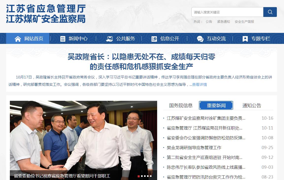 江苏省应急管理厅主要职责:(一)负责应急管理工作,指导全省各级各部门应对安全生产类、自然灾害类等突发事件和综合防灾减灾救灾工作。负责安全生产综合监督管理和工矿商贸行业安全生产监督管理工作。(二)拟订应急管理、安全生产等政策,组织编制省应急体系建设、安全生产和综合防灾减灾规划。起草相关地方性法规、规章草案,组织制定相关规程、标准并监督实施。(三)指导应急预案体系建设,建立完善事故灾难和自然灾害分级应对制度。组织编制省总体应急预案和安全生产类、自然灾害类专项预案。综合协调应急预案衔接工作,组织开展预案演练,推动应急避难设施建设。(四)牵头建立统一的应急管理信息系统,负责信息传输渠道的规划和布局。建立监测预警和灾情报告制度,健全自然灾害信息资源获取和共享机制,依法统一发布灾情。(五)组织指导协调安全生产类、自然灾害类等突发事件应急救援。承担省应对重大灾害指挥部工作。综合研判突发事件发展态势并提出应对建议。协助省委、省政府指定的负责同志组织重大灾害应急处置工作。(六)统一协调指挥各类应急专业队伍,建立应急协调联动机制,推进指挥平台对接。提请、衔接解放军和武警部队参与应急救援工作。(七)统筹应急救援力量建设,负责消防、森林火灾扑救、抗洪抢险、地震和地质灾害救援、生产安全事故救援等专业应急救援力量建设。指导综合性应急救援队伍、各级各部门及社会应急救援力量建设。(八)负责消防管理工作,指导全省各级消防监督、火灾预防、火灾扑救等工作。(九)指导协调森林火灾、水旱灾害、地震和地质灾害等防治工作。负责自然灾害综合监测预警工作,指导开展自然灾害综合风险评估工作。(十)组织协调灾害救助工作,组织指导灾情核查、损失评估、救灾捐赠工作。管理、分配中央下拨和省级救灾款物并监督使用。(十一)依法行使安全生产综合监督管理职权,指导协调、监督检查省政府有关部门和各设区市政府安全生产工作。组织开展安全生产巡查、考核工作。(十二)按照分级、属地原则,依法监督检查工矿商贸生产经营单位贯彻执行安全生产法律法规情况及其安全生产条件和有关设备(特种设备除外)、材料、劳动防护用品的安全生产管理工作。依法组织并指导监督实施安全生产准入制度。负责危险化学品安全监督管理综合工作和烟花爆竹安全生产监督管理工作。(十三)依法组织指导生产安全事故调查处理,监督事故查处和责任追究落实情况。组织开展自然灾害类突发事件的调查评估工作。(十四)开展应急管理、安全生产等方面的对外交流与合作,组织参与安全生产类、自然灾害类等突发事件的跨区域救援工作。(十五)制定应急物资储备和应急救援装备规划并组织实施,会同省粮食和物资储备局等部门建立健全应急物资信息平台和调拨制度,在救灾时统一调度。(十六)负责应急管理、安全生产、防灾减灾宣传教育和培训工作。组织指导相关科学技术研究、推广应用和信息化建设工作。(十七)完成省委、省政府交办的其他任务。