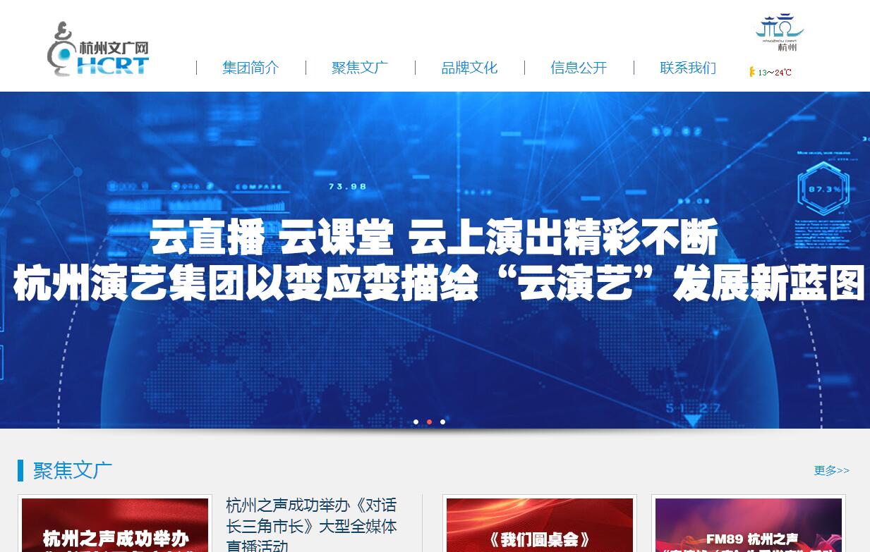 杭州文化广播电视集团(杭州文化广播电视集团有限公司)为全民事业单位,实行企业化管理。集团拥有杭州电视台5个频道(综合频道、西湖明珠频道、生活频道、影视频道、少儿频道),杭州人民广播电台3个频率(新闻综合频率、西湖之声、交通经济广播)和广播影视周报等10家媒体,8家艺术院团(杭州歌舞团、杭州越剧院、杭州杂技总团、杭州滑稽艺术剧院、杭州话剧团、杭州爱乐乐团等)和杭州文广投资控股有限公司、华数数字电视有限公司、杭州中国国际动漫节会展有限公司、杭州文物公司、杭州电影公司等30家控股、参股、全资公司,杭州大剧院、西泠书画院、杭州市文化中心等文化事业单位。其主要职责:(一)贯彻落实党和国家在广播电视宣传工作、文化艺术工作、文化广播电视事业与产业发展方面的方针、政策。(二)坚持团结、稳定、鼓劲和以正面宣传为主,坚持“三贴近”,牢牢把握正确的舆论导向,提高舆论引导水平;坚持“二为”方向、“双百”方针,繁荣文艺创作。(三)根据国家发展文化广播电视事业与产业的总体规划和要求,制订本集团事业与产业发展规划并积极组织实施。(四)组织广播电视各频率频道、文化院团开发各自优势资源,增强文化广播电视系统的综合发展和可持续发展能力。(五)紧跟国际国内技术发展前沿,指导和协调广播电视系统高新技术应用和开发,落实各项安全播出管理措施,确保广播电视的安全播出和传输。(六)深化文化体制改革,加强集团(公司)的经营管理,激发活力,壮大实力,增强竞争力,实现国有资产的保值增值。(七)搞好集团的思想政治建设、业务培训、职业道德教育和人才队伍建设。承办市委、市政府交办的相关事项。